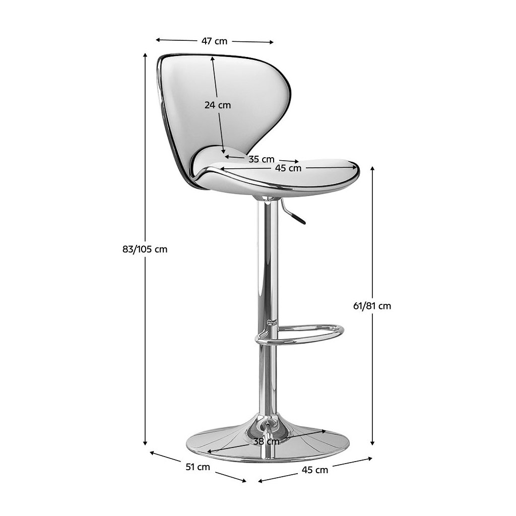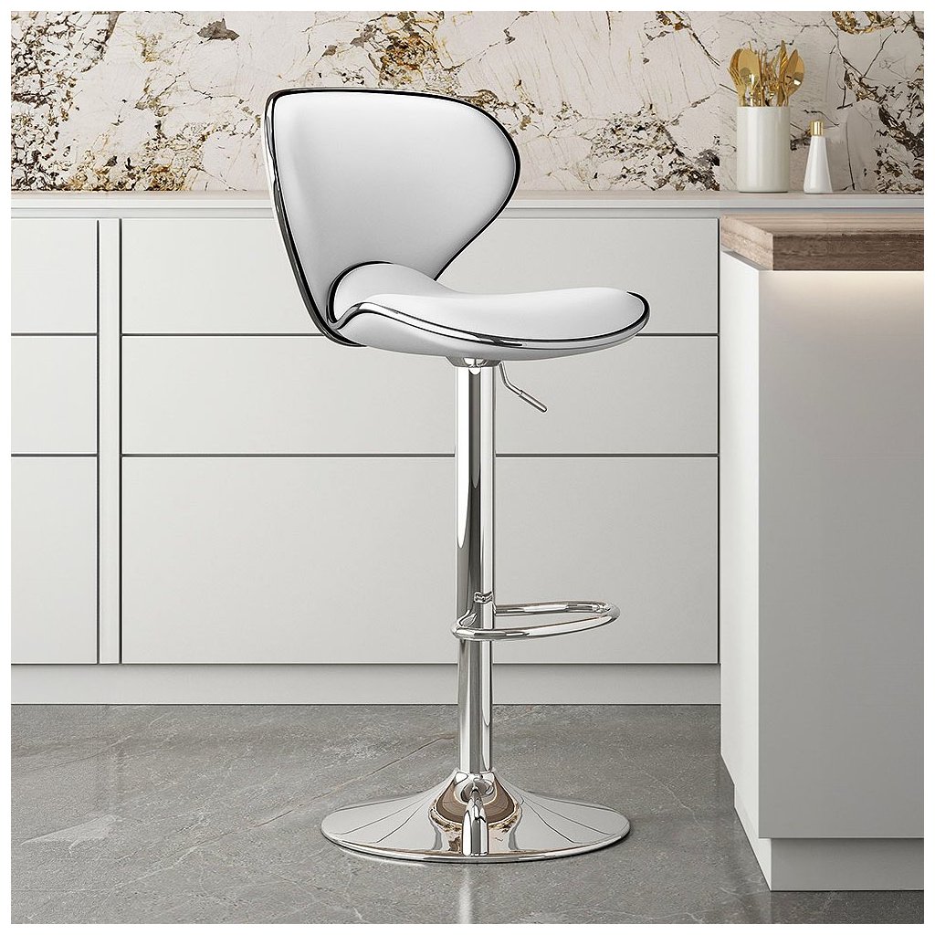 Vďaka kvalitnému ekokoženému sedáku a stabilnej chrómovej konštrukcii je táto stolička nielen estetická, ale aj veľmi praktická. Otočné a výškovo nastaviteľné sedadlo umožňuje prispôsobiť si výšku podľa potreby, čo zaručuje pohodlné sedenie pre každého.