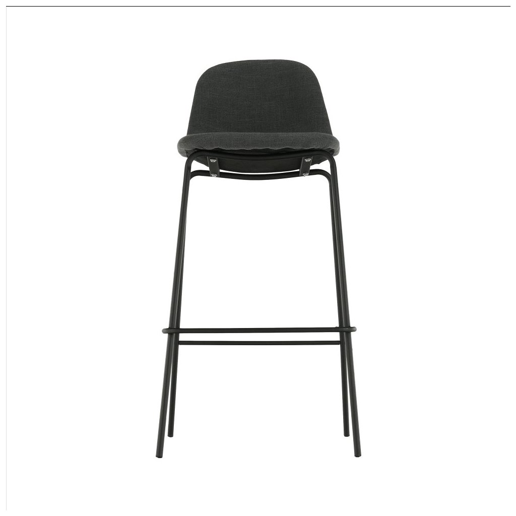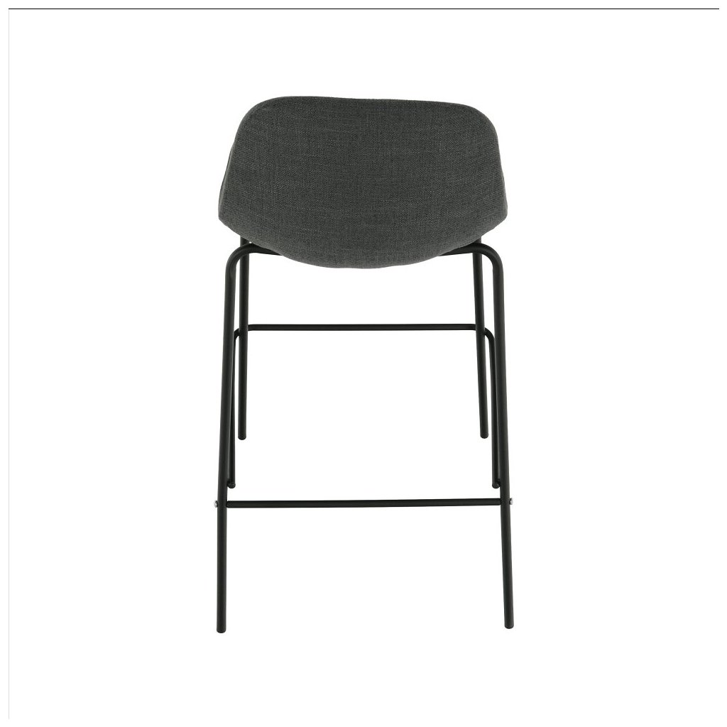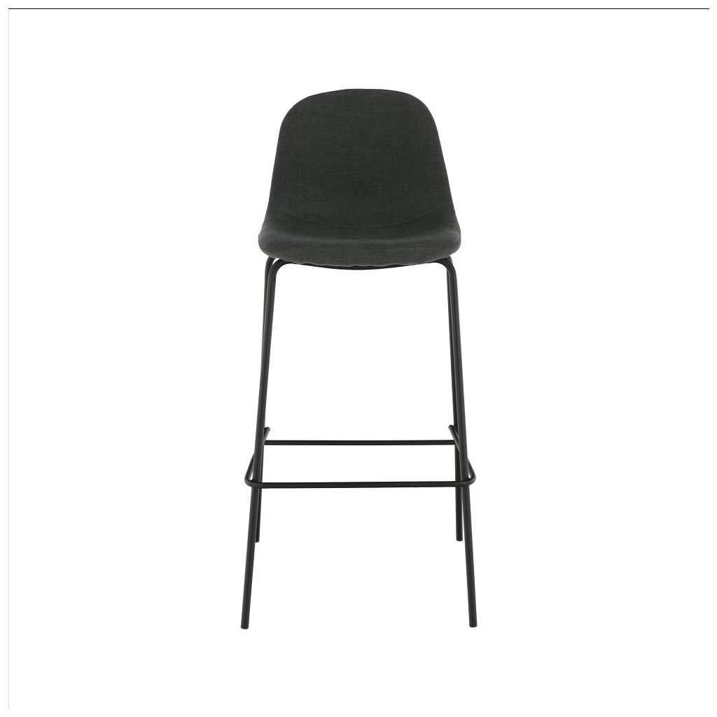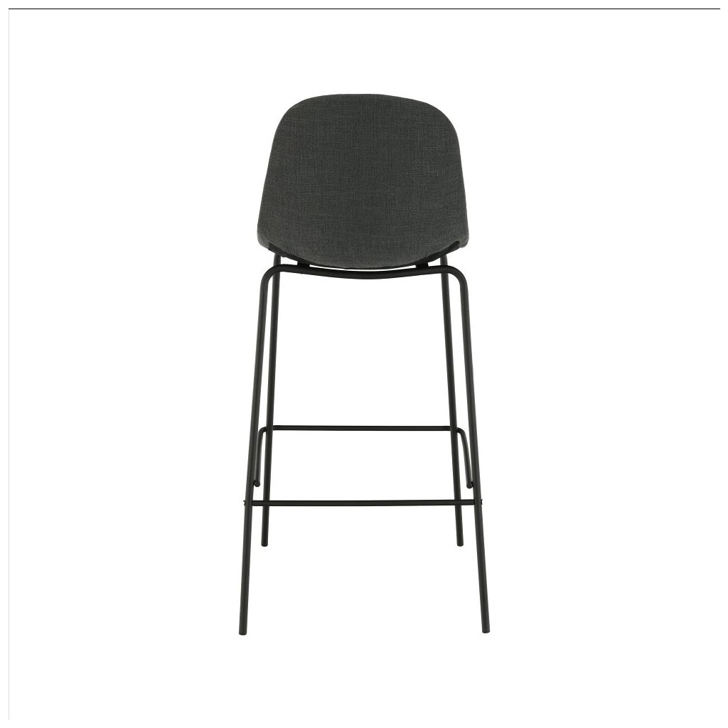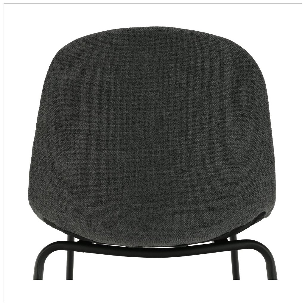 Barová stolička MARIOLA v tmavosivej látke kombinuje štýlový dizajn a pohodlie. Tvarované sedadlo a stabilná čierna kovová konštrukcia sú ideálne pre moderné interiéry. Nosnosť 90 kg.