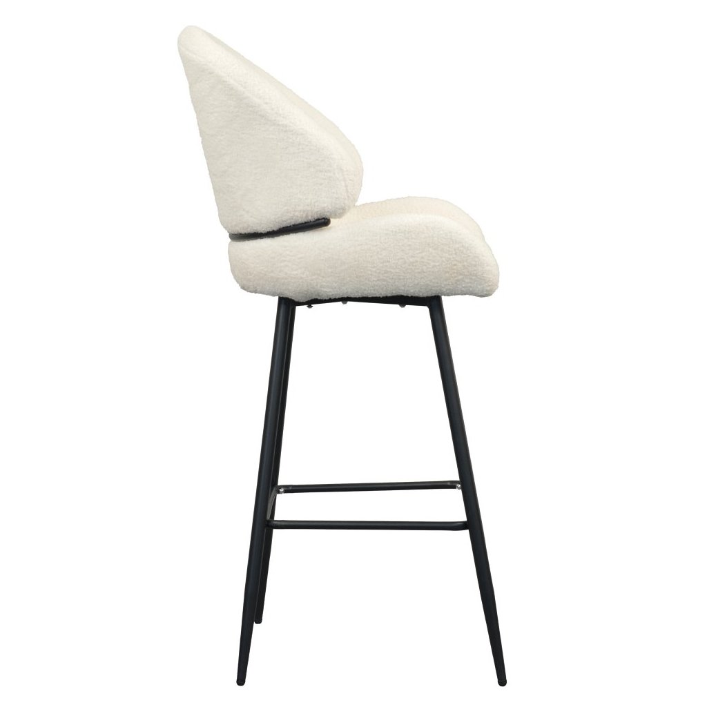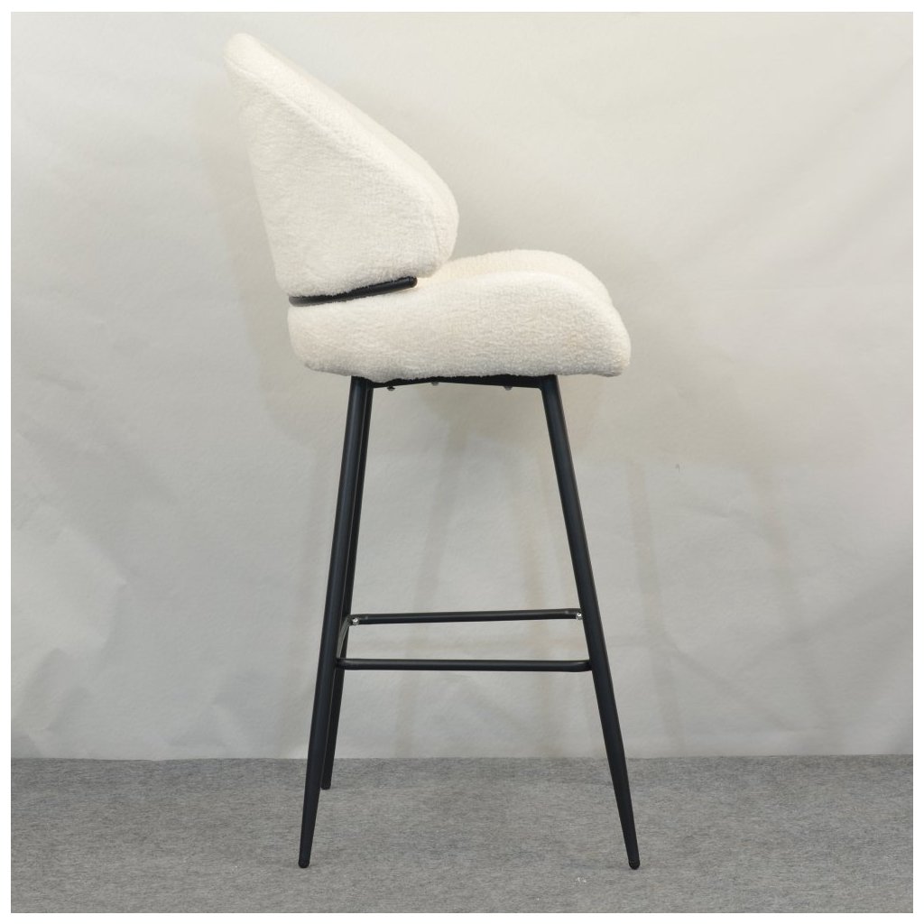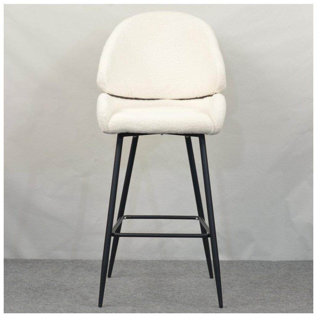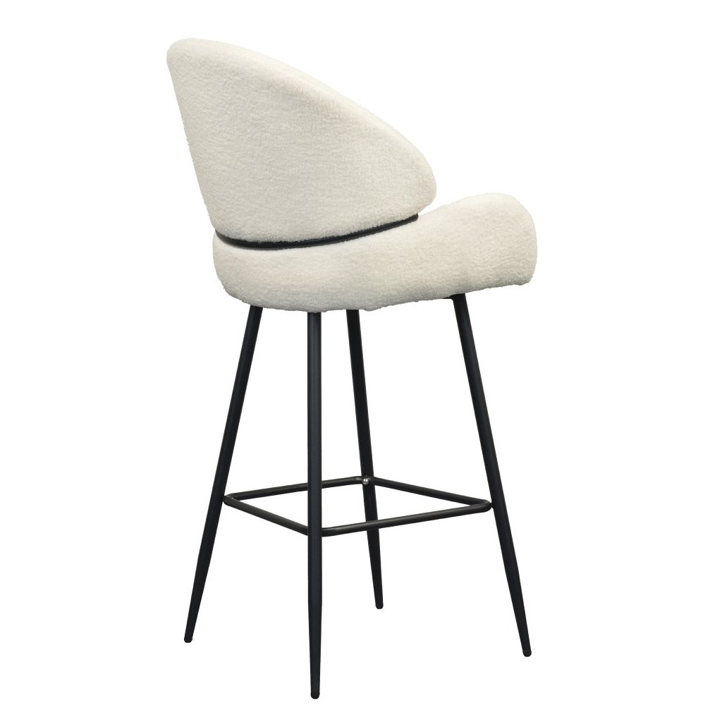 Barová stolička SANAKO s bielou látkou Bouclé je elegantným doplnkom do každej jedálne. Kontrastné čierne kovové nohy zabezpečujú stabilitu a moderný vzhľad. Ideálna pre štýlové stolovanie!