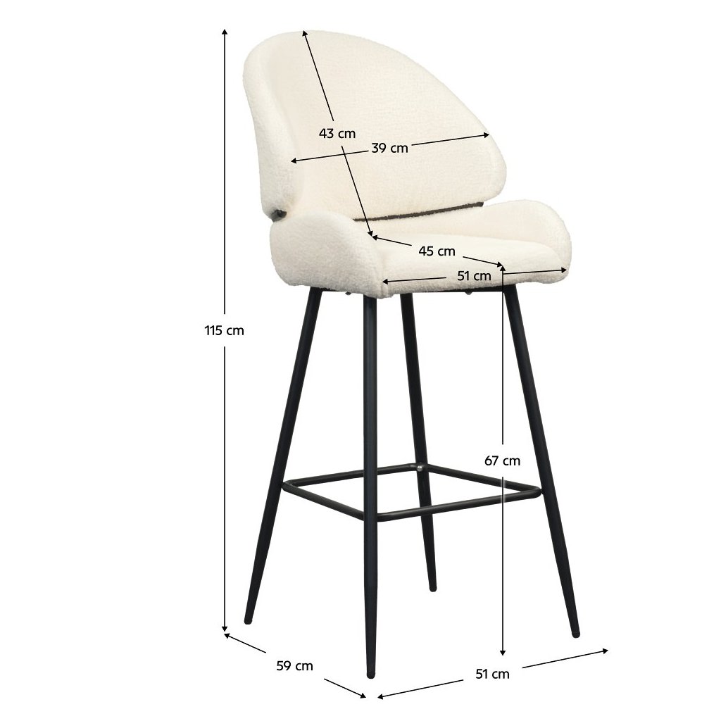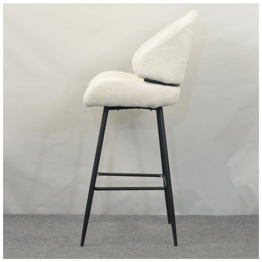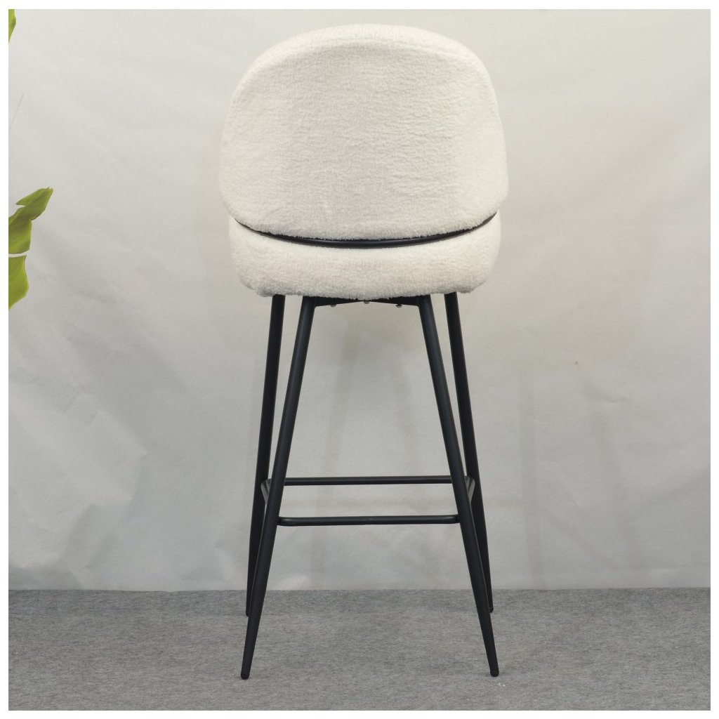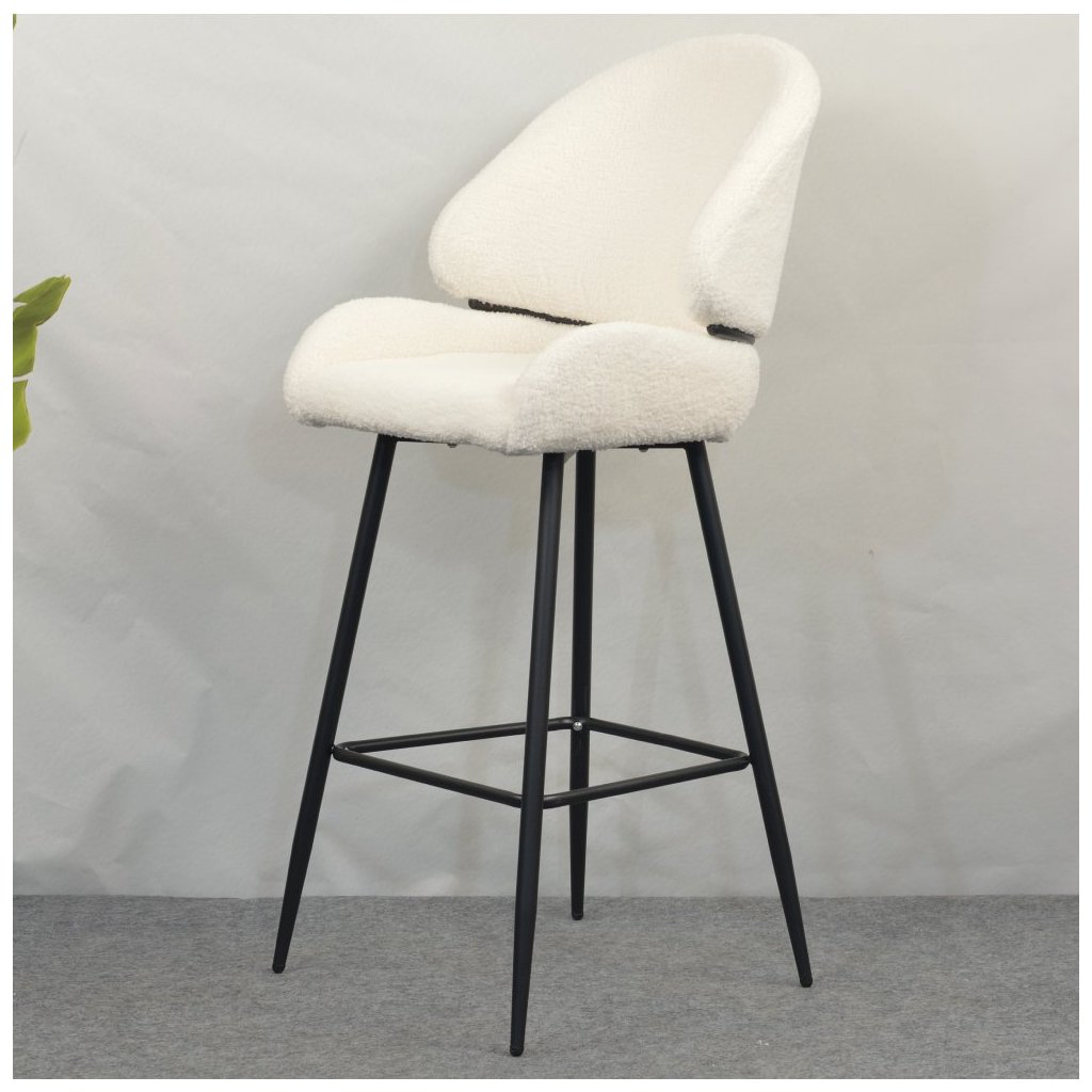 Barová stolička SANAKO s bielou látkou Bouclé je elegantným doplnkom do každej jedálne. Kontrastné čierne kovové nohy zabezpečujú stabilitu a moderný vzhľad. Ideálna pre štýlové stolovanie!