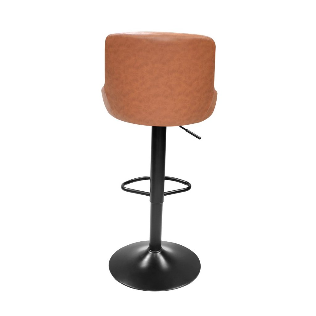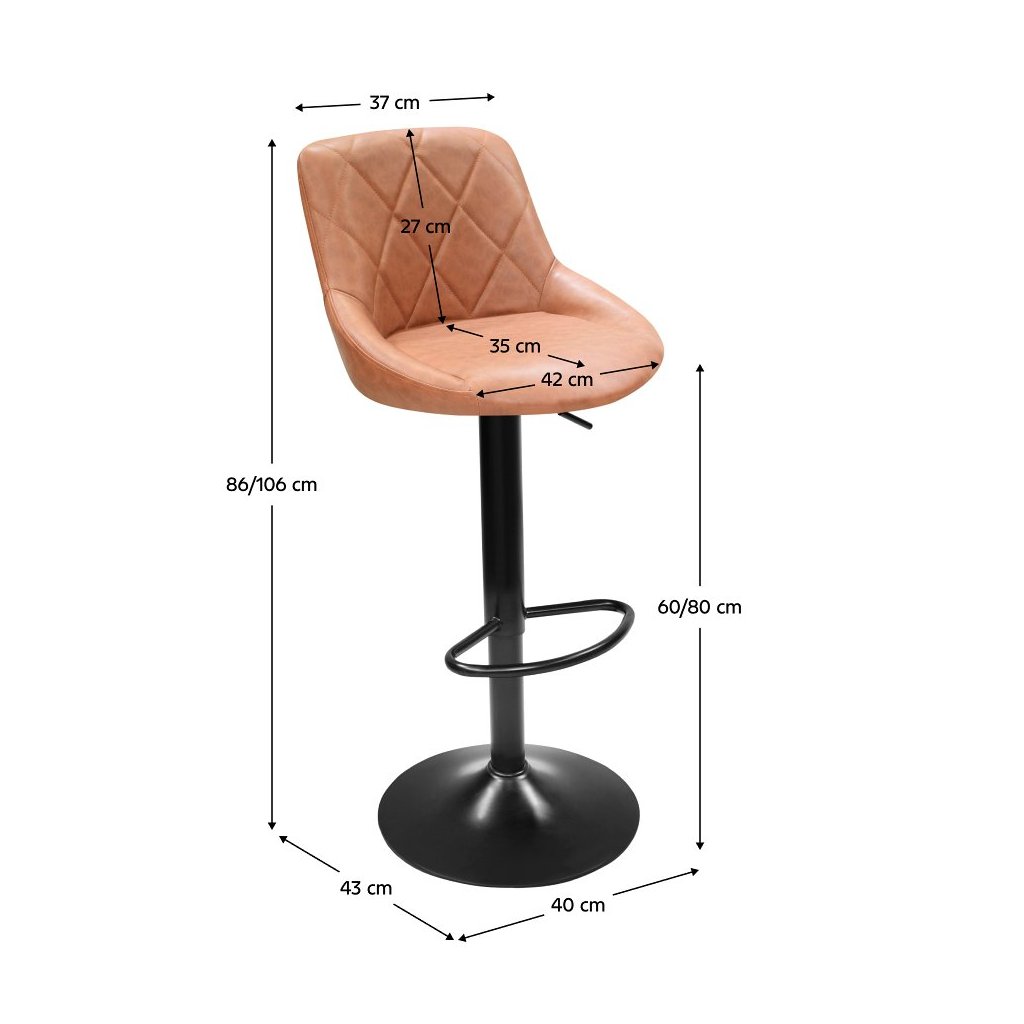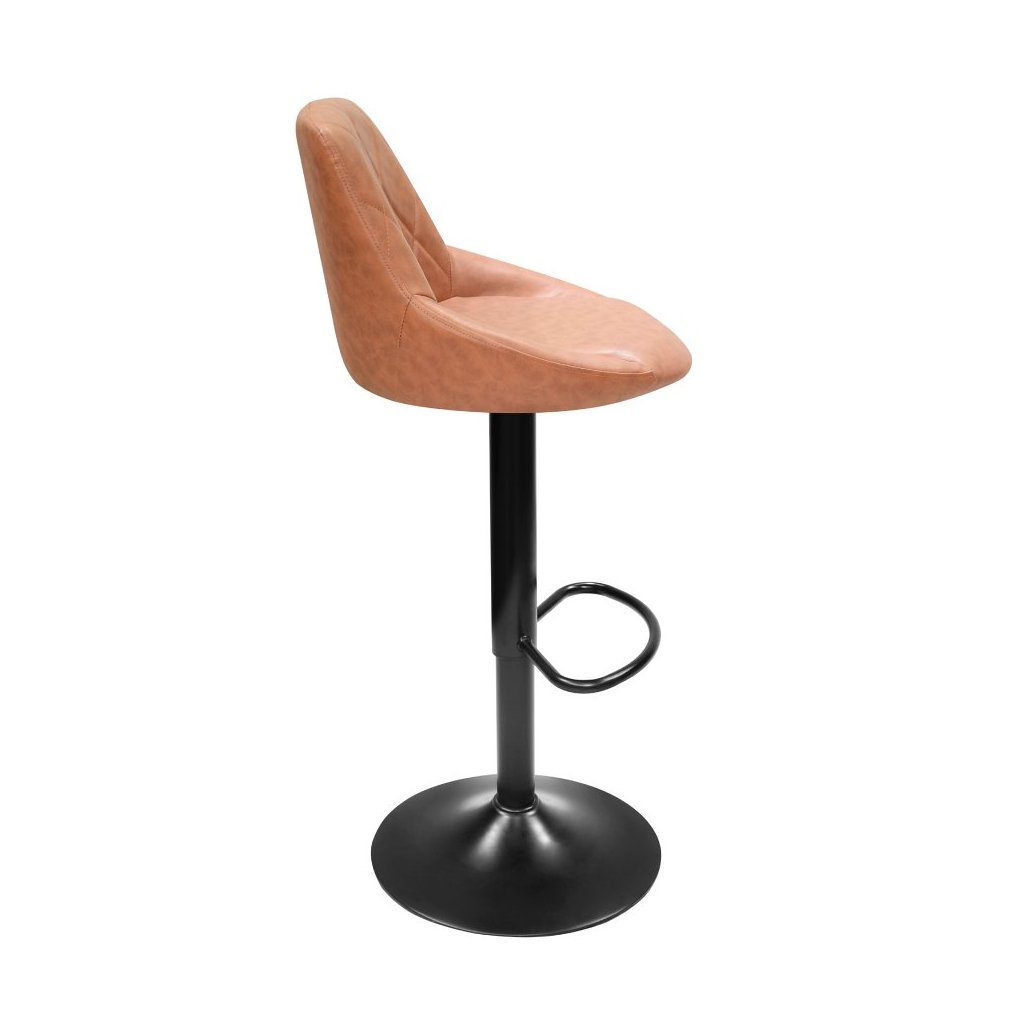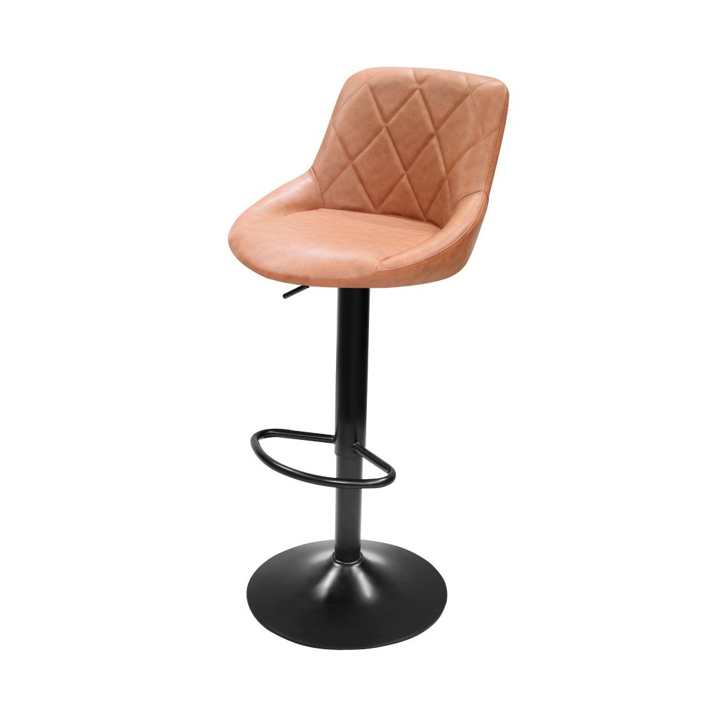 Barová stolička TERKAN v koňakovej ekokoži kombinuje eleganciu a funkčnosť. Otočné a výškovo nastaviteľné sedadlo s nosnosťou 100 kg a stabilnou kovovou konštrukciou je ideálnym doplnkom do každej dom