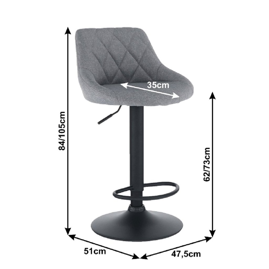 Barová stolička TERKAN v elegantnej sivej látke kombinuje futuristický dizajn s pevnou čiernou kovovou konštrukciou. Ideálna na doplnenie každého interiéru. Nosnosť 100 kg, výška sedu 62-73 cm.