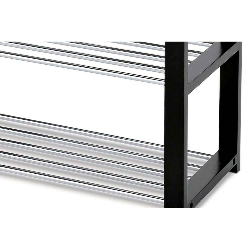 Botník s štyrmi policami z masívneho dreva a chrómovanými kovovými policami ponúka moderný dizajn a stabilitu. Kompaktné rozmery a dostatočná cirkulácia vzduchu pre optimálnu starostlivosť o obuv.