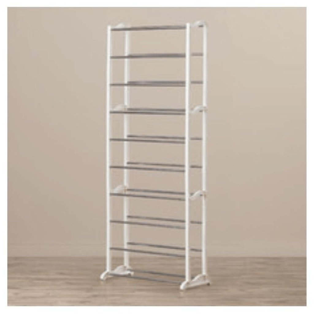 Praktický botník v bielej farbe s rozmermi 51x16,5x141 cm. Vyrobený z plastu a kovu, dodávaný v demonte. Ideálny na uskladnenie obuvi a úsporu priestoru.