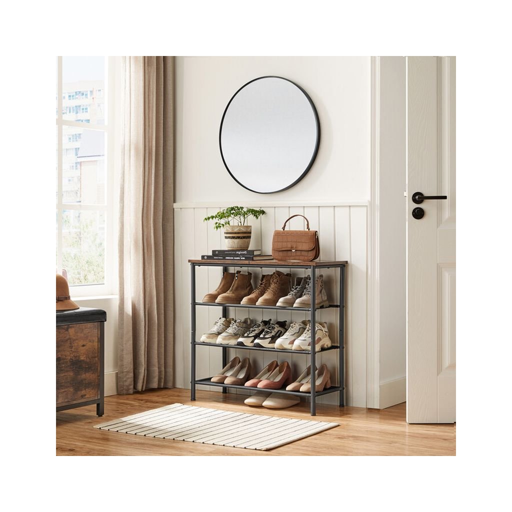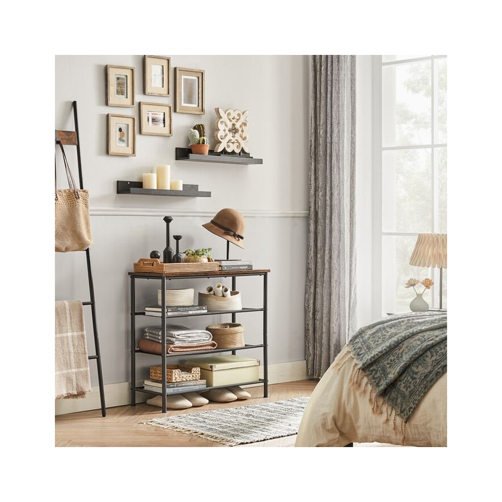 Botník v rustikálnom štýle kombinuje MDF dosku s dekorom old wood a pevnú kovovú konštrukciu. Tri priestranné police ponúkajú dostatok miesta na obuv a drobnosti. Stabilné kovové nohy chránia podlahu.