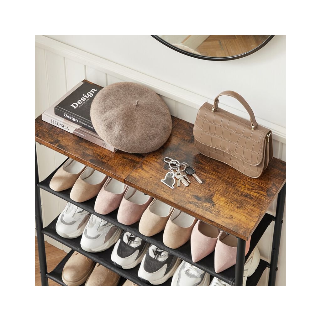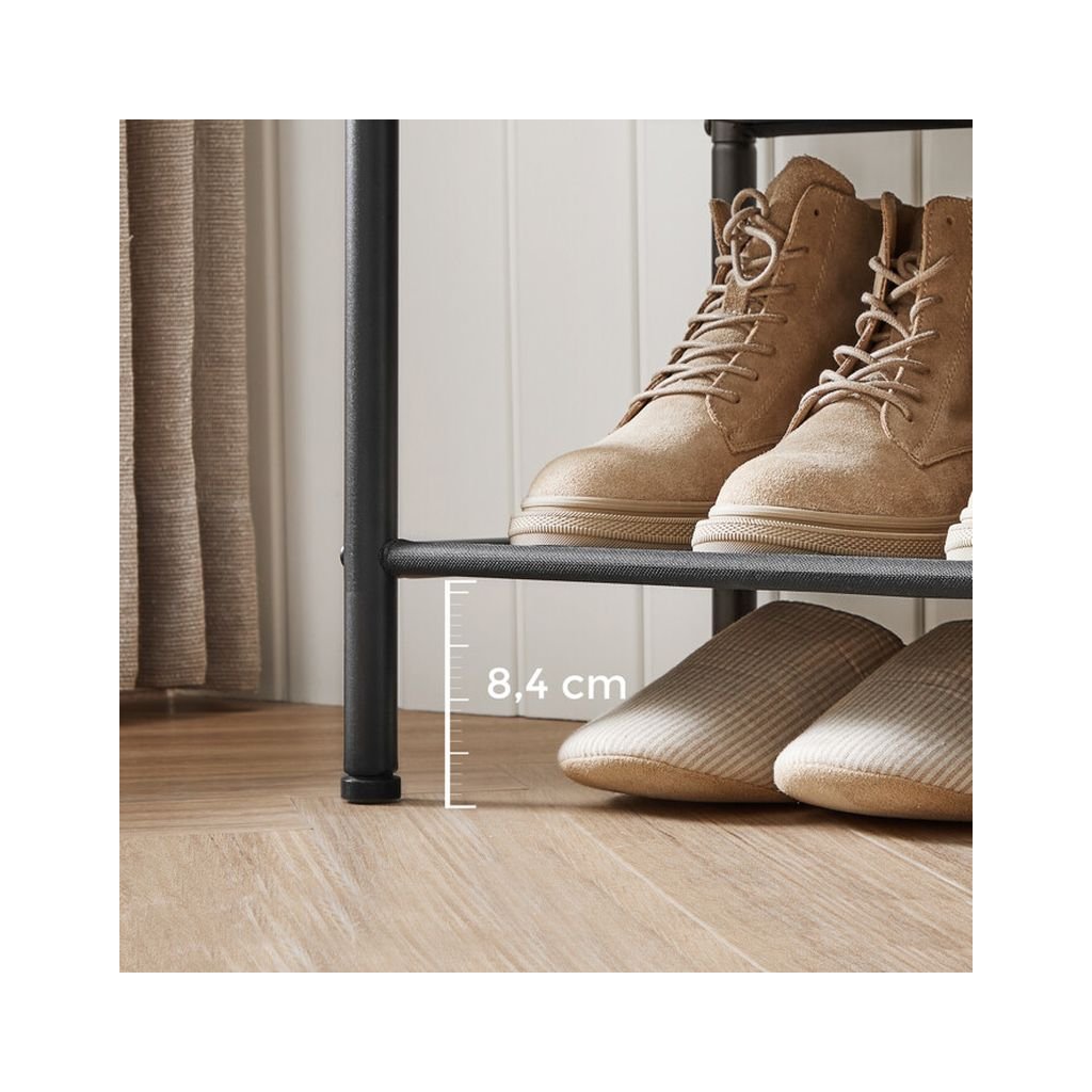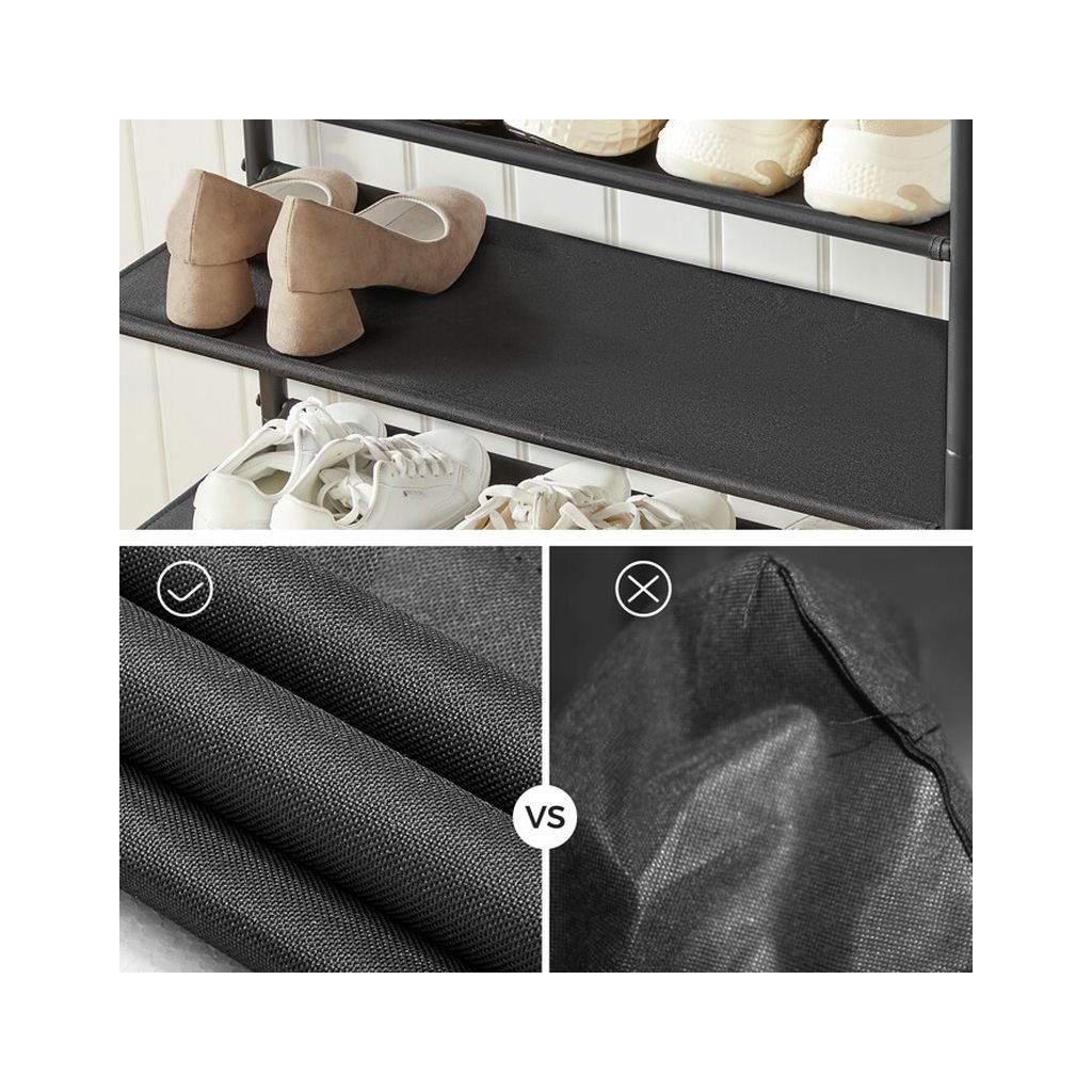 - Tri priestranné police potiahnuté polyesterovou tkaninou ponúkajú dostatok miesta na obuv a drobnosti.