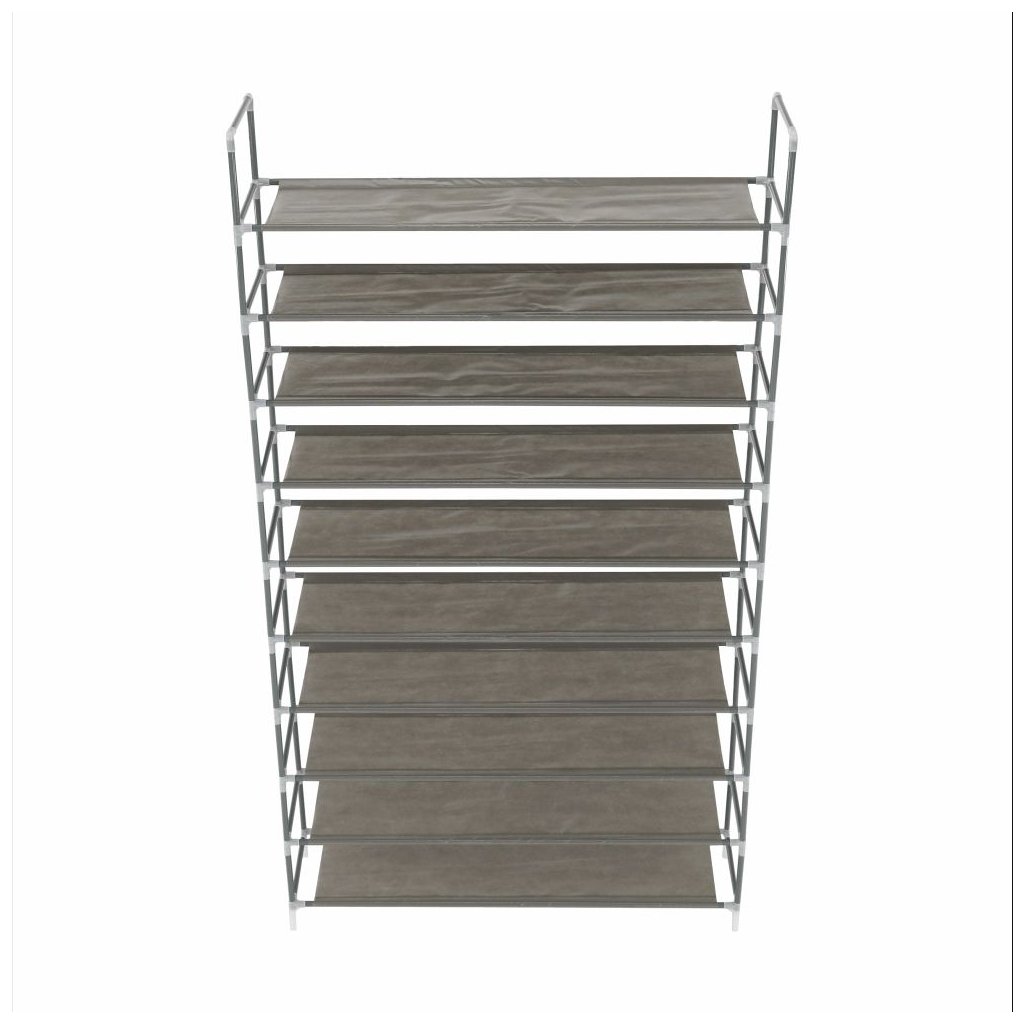 Sivý botník FILOU ponúka 10 radov pre 50 párov topánok. Vyrobený z kovu a látky, s rozmermi 100x27x175 cm a nosnosťou 30 kg. Dodávaný v demonte. Ideálny pre usporiadanie obuvi.