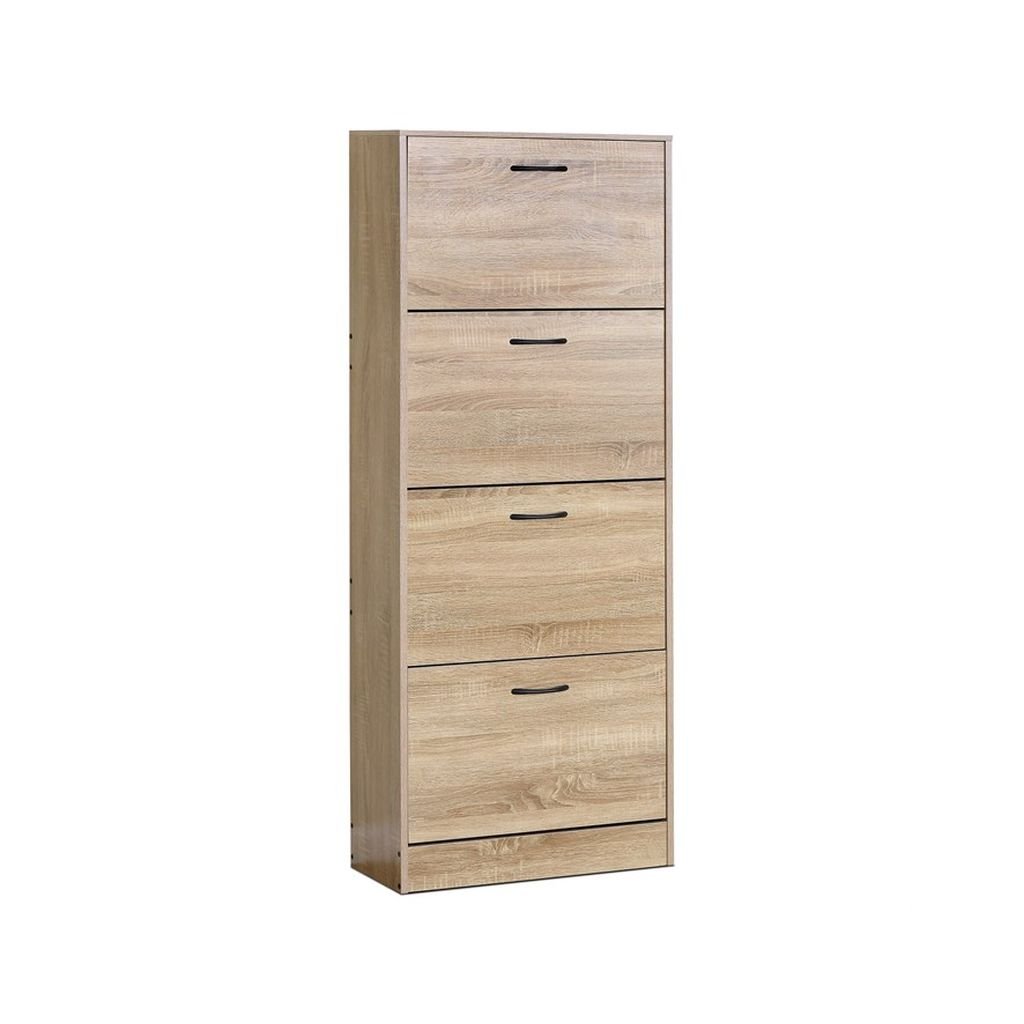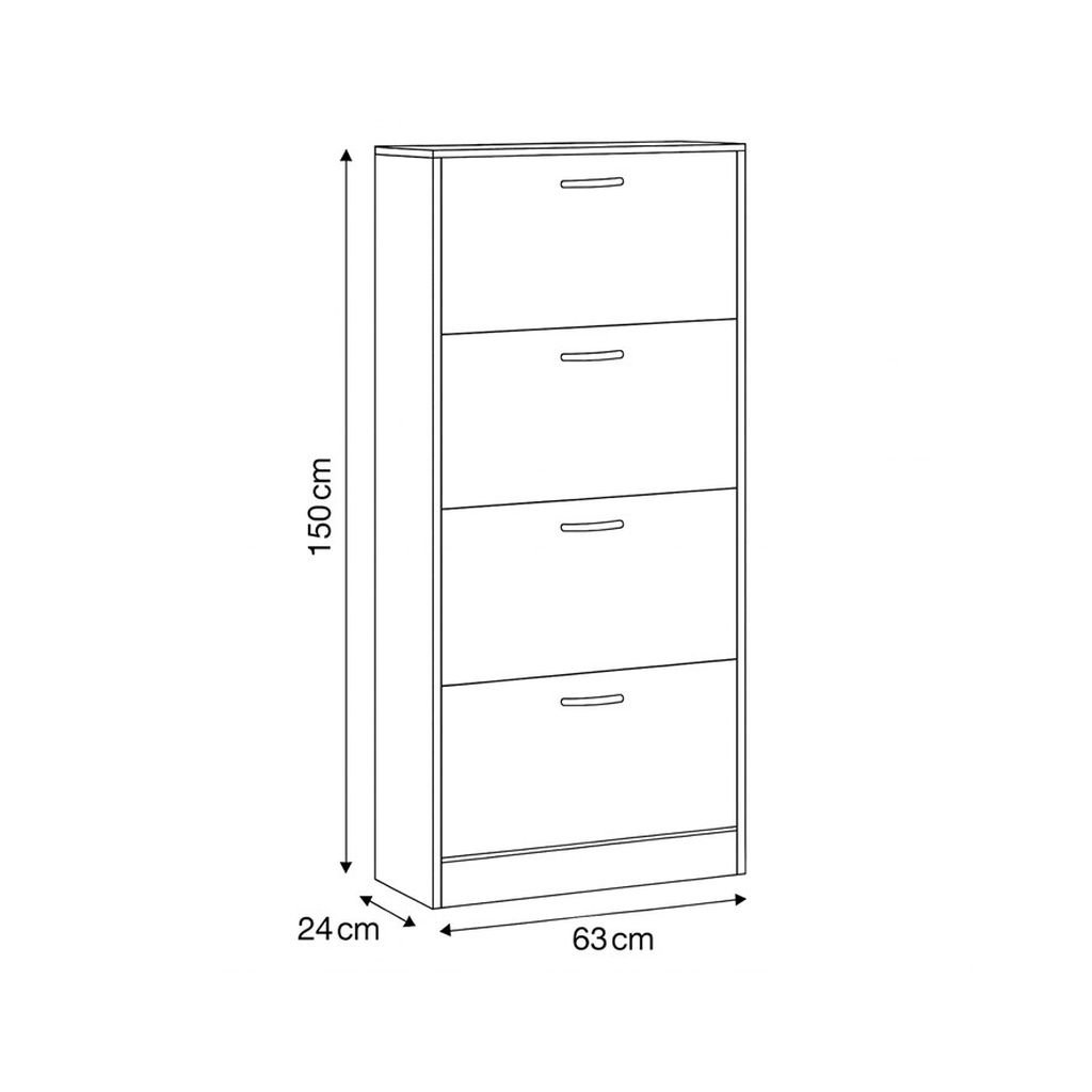 Kompaktný botník so štyrmi priehradkami v dekore dub. Vyrobený z MDF dosiek, s čiernymi kovovými úchytkami. Ideálny do predsiení a chodieb, zabezpečuje poriadok a prehľadnosť.