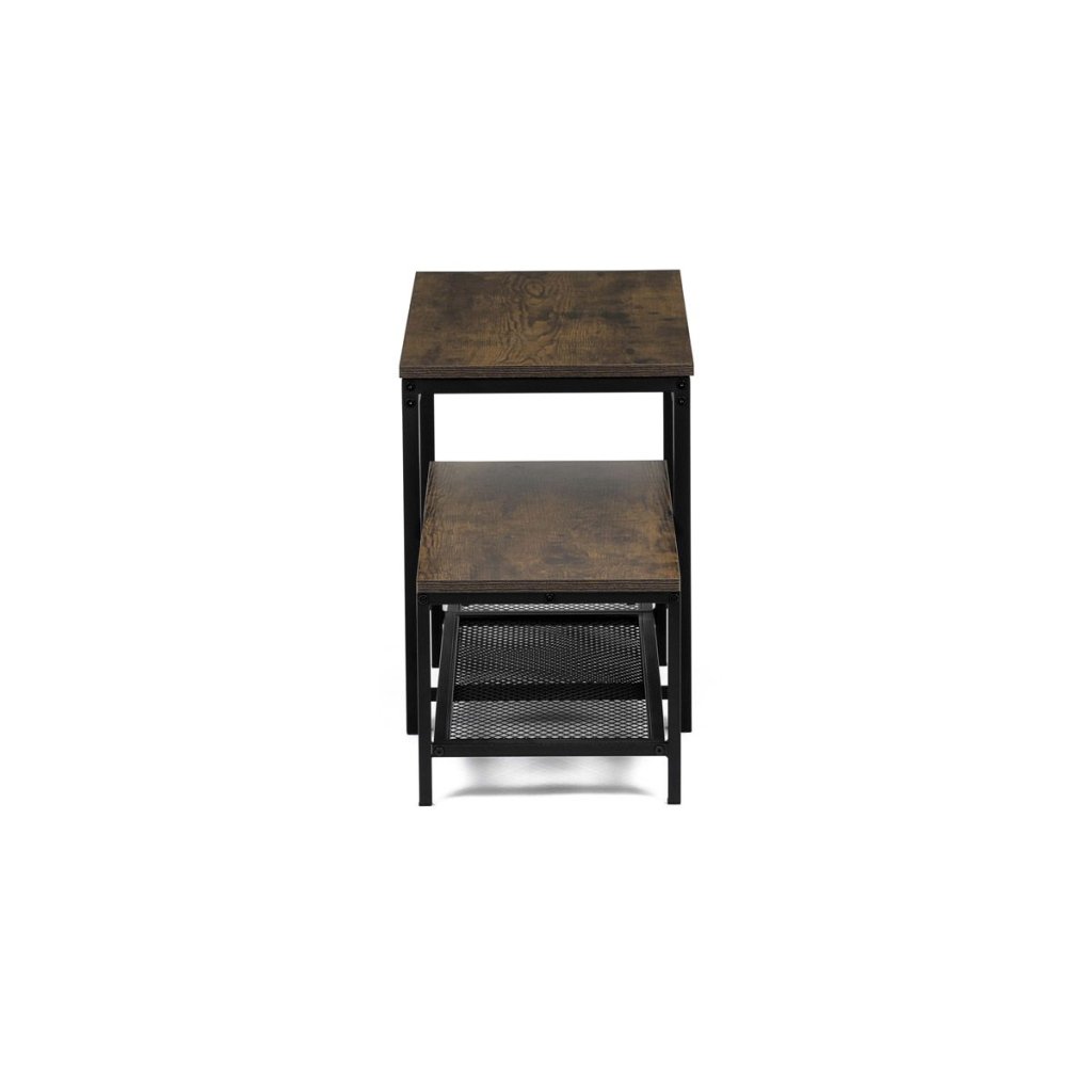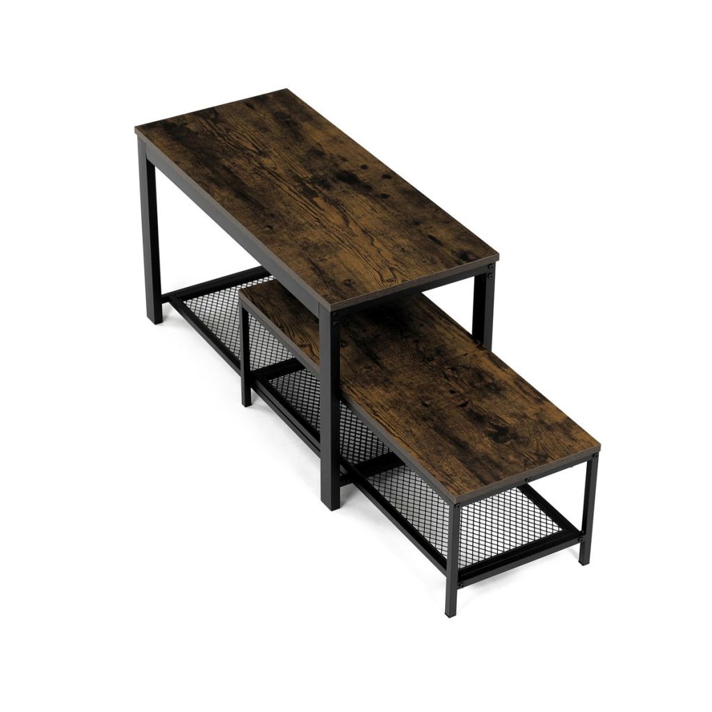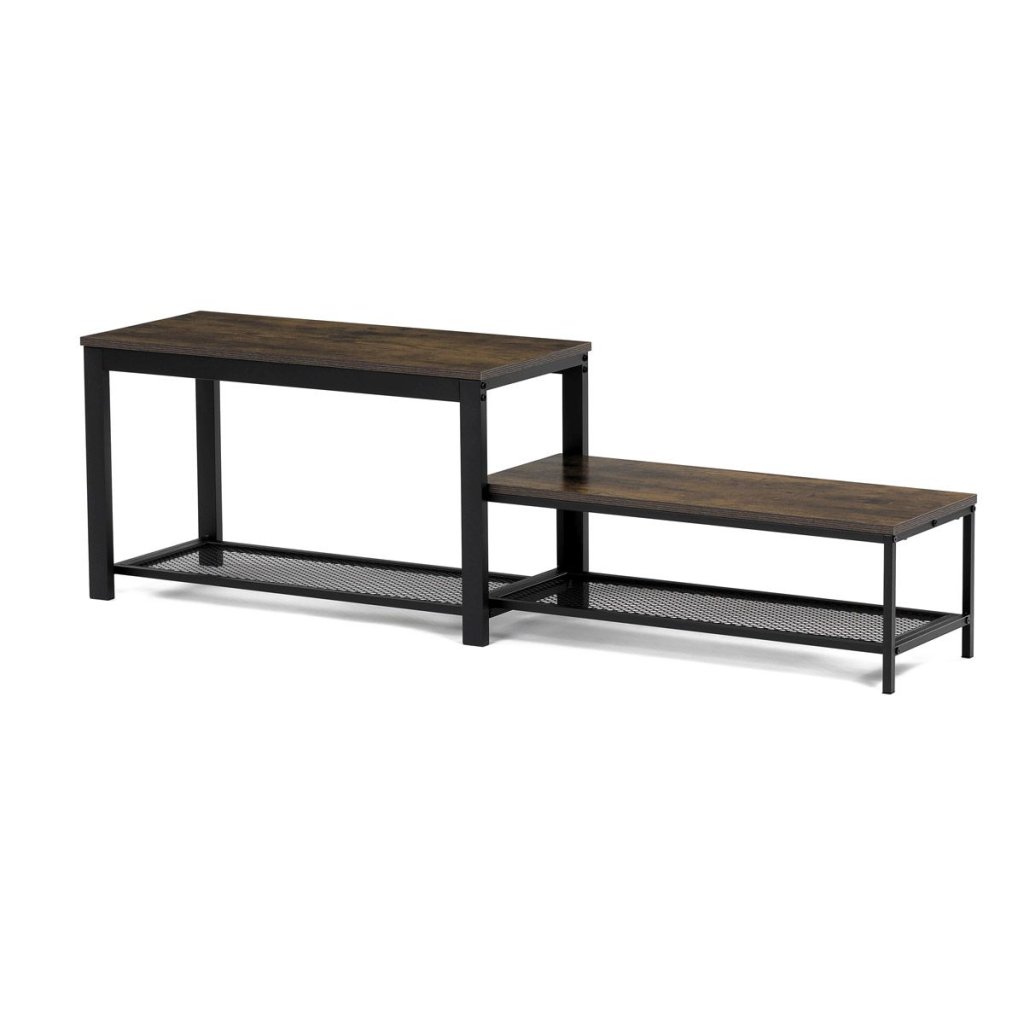 Botník v dekore starého dreva je praktický a štýlový doplnok do predsiene. Kombinácia kovového rámu a drevených dosiek ponúka dostatok úložného priestoru a stabilitu. Rozmery: 78 x 30,5 x 27 cm.