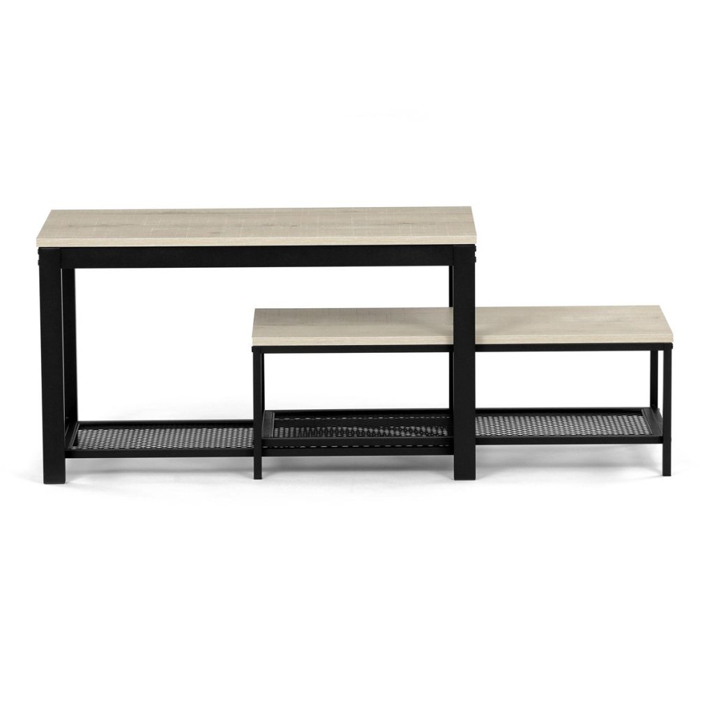 Botník v dekore starého dreva je praktickým a štýlovým doplnkom do predsiene. Kombinácia kovového rámu a drevených dosiek zabezpečuje stabilitu a dostatok úložného priestoru. Rozmery: 78 x 30,5 x 27 c