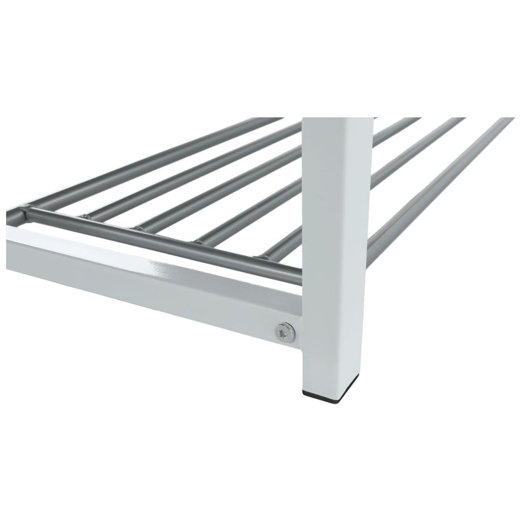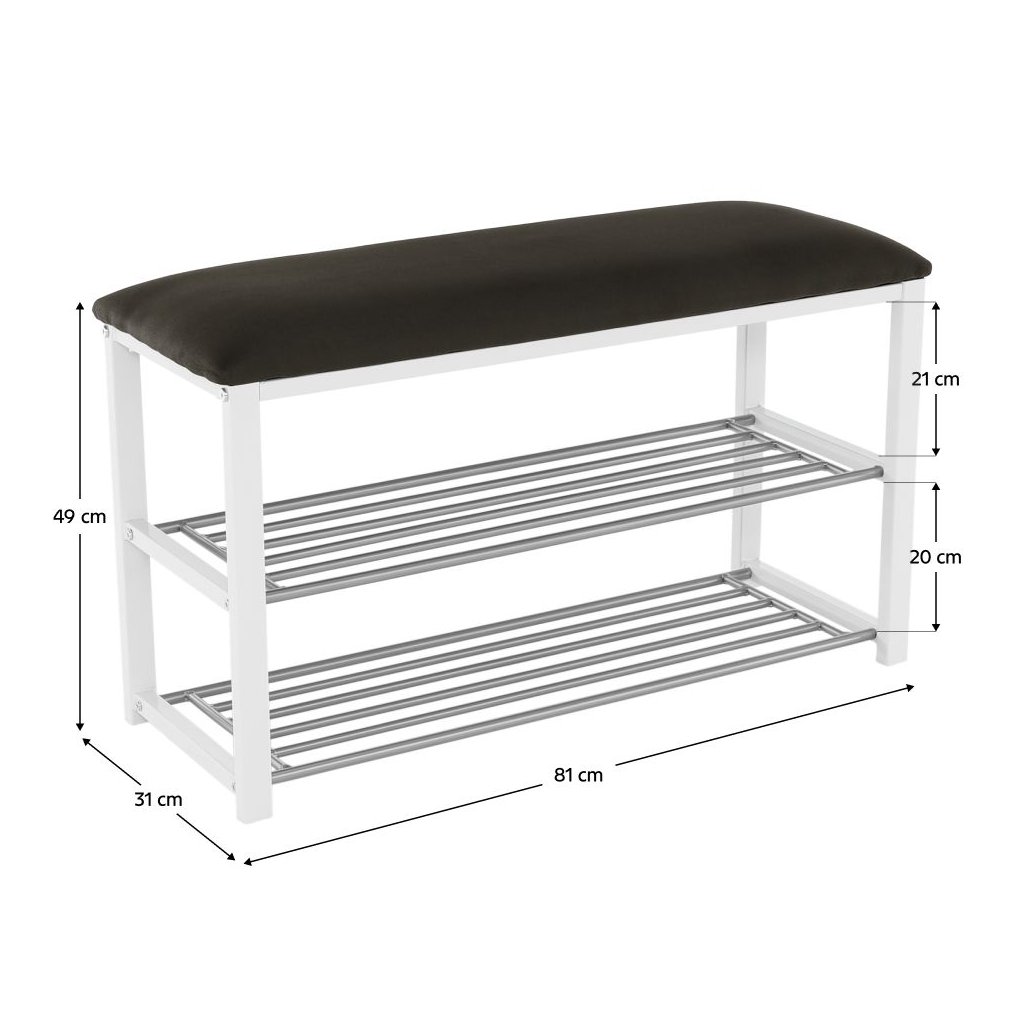 Botník LANGELLA kombinuje funkčnosť a elegantný dizajn v sivých a bielych odtieňoch. Vyrobený z odolnej látky a kovu, ponúka nosnosť do 80 kg. Rozmery: 81x31x49 cm. Dodávaný v demonte.