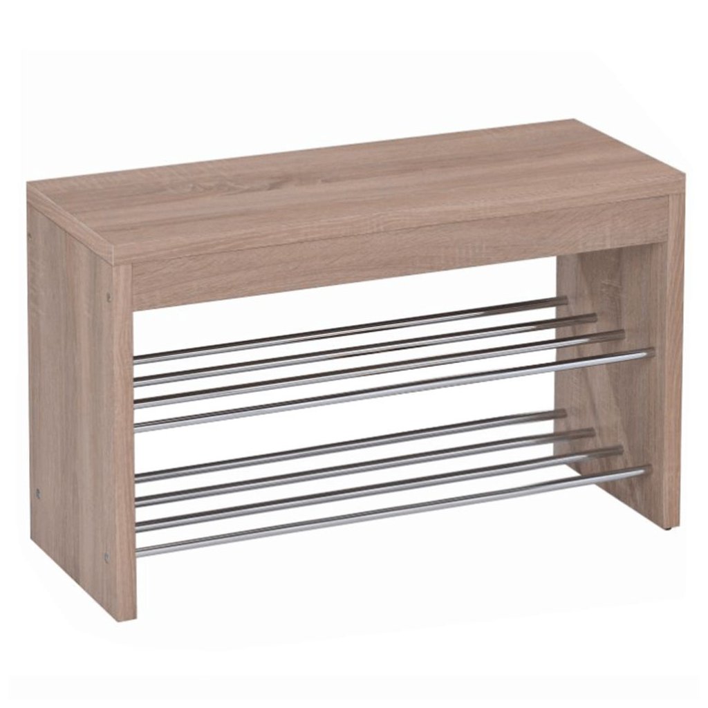 Botník LUSIA v odtieni dub sonoma kombinuje praktickosť a moderný dizajn. S rozmermi 80x30x47 cm a nosnosťou do 100 kg ponúka dostatok miesta na obuv. Vyrobený z MDF a kovu, dodávaný v demonte.