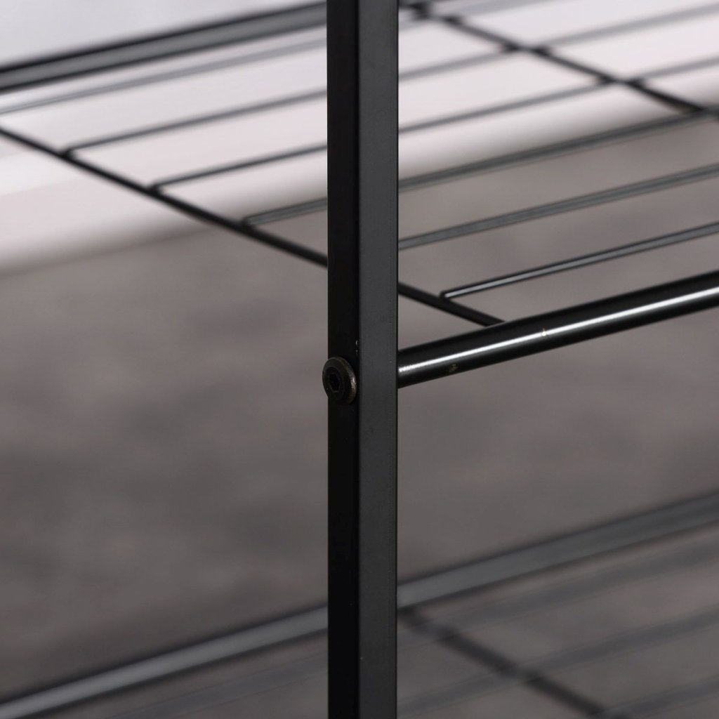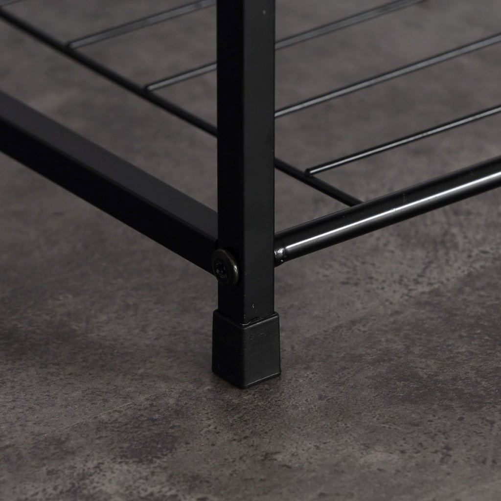 Hnedý botník s kovovou konštrukciou a odkladacími plochami. Pôda z MDF dosky s 3D fóliou v odtieni dub sonoma. Ideálny na uskladnenie obuvi a organizáciu priestoru.