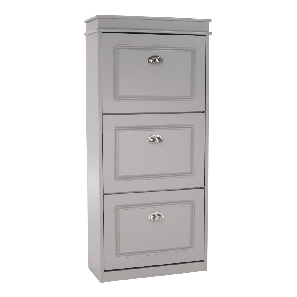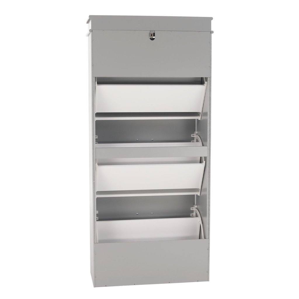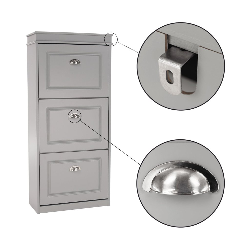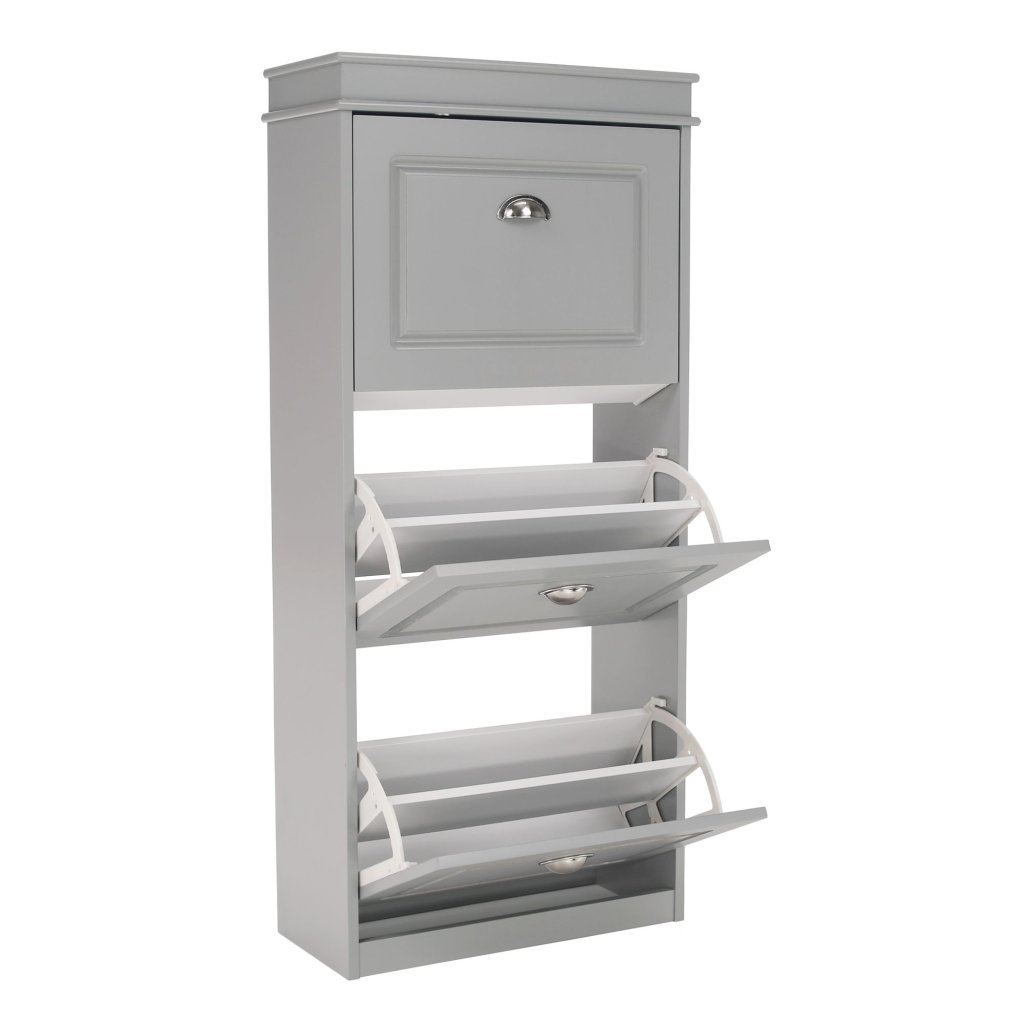 Sivý botník SEBER 2 ponúka praktické riešenie pre uskladnenie až 12 párov topánok. S výklopnými šuplíkmi a úchytkami, rozmery 53,5x24x117 cm, nosnosť 75 kg. Dodávané v demonte.
