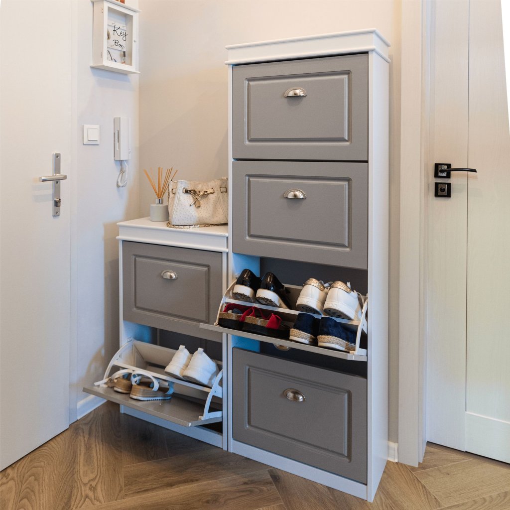 Botník – SEBER 3, Biela/sivá – dokonalý spôsob, ako usporiadať vaše topánky s eleganciou.