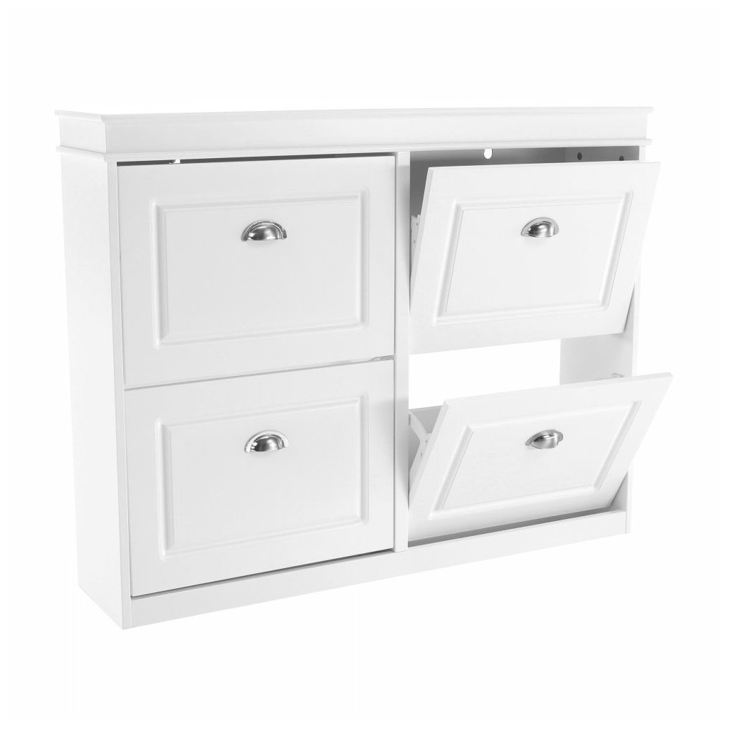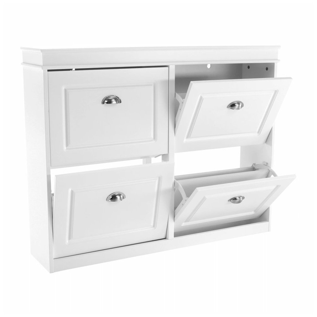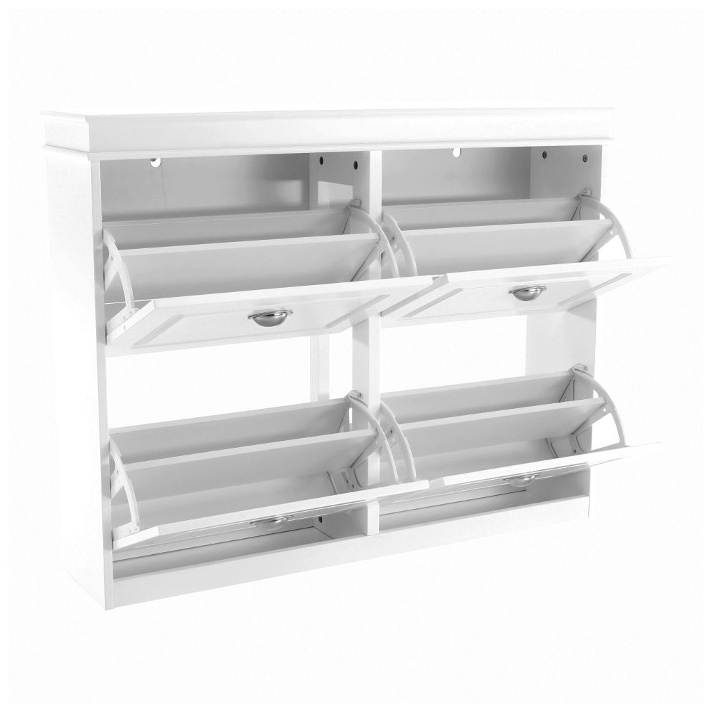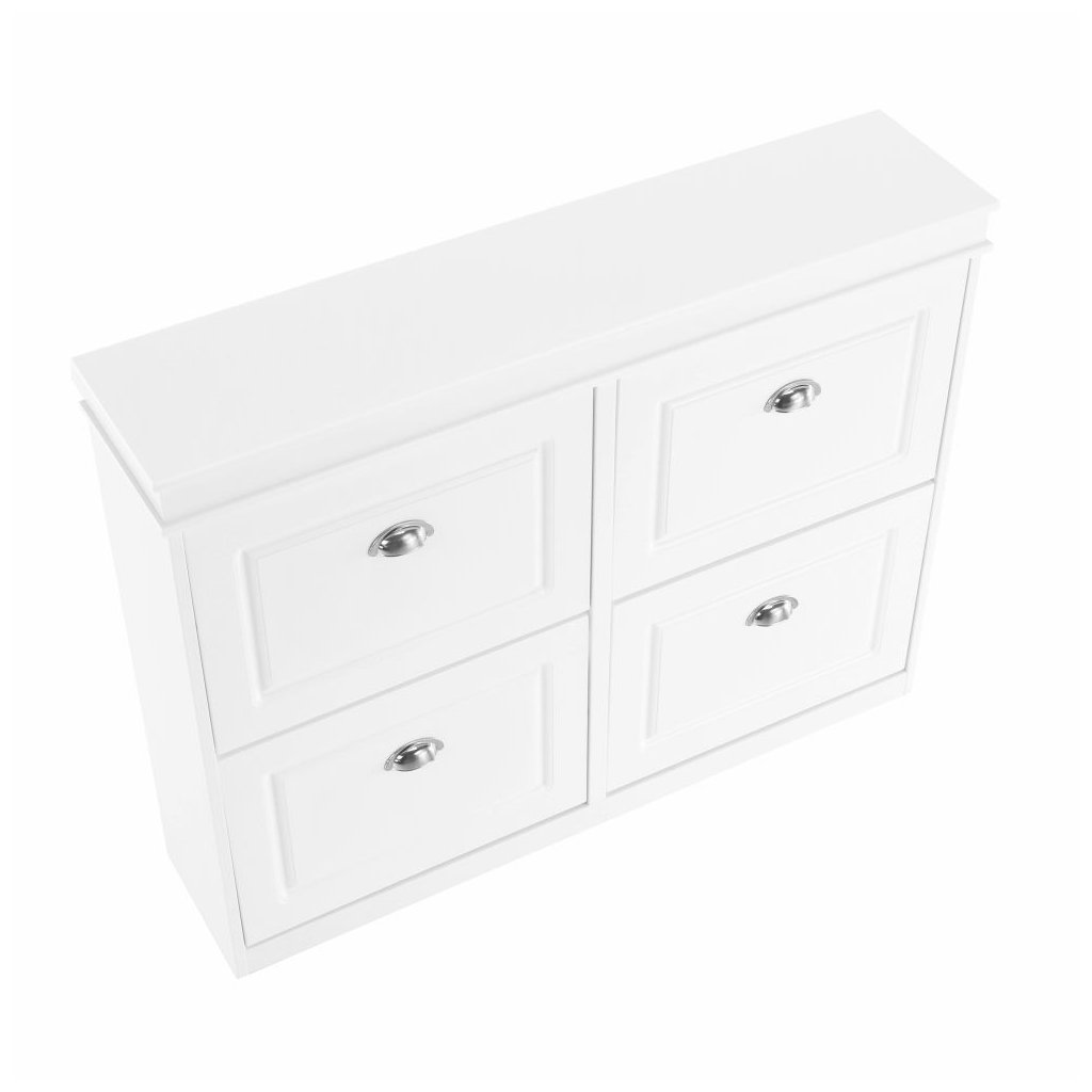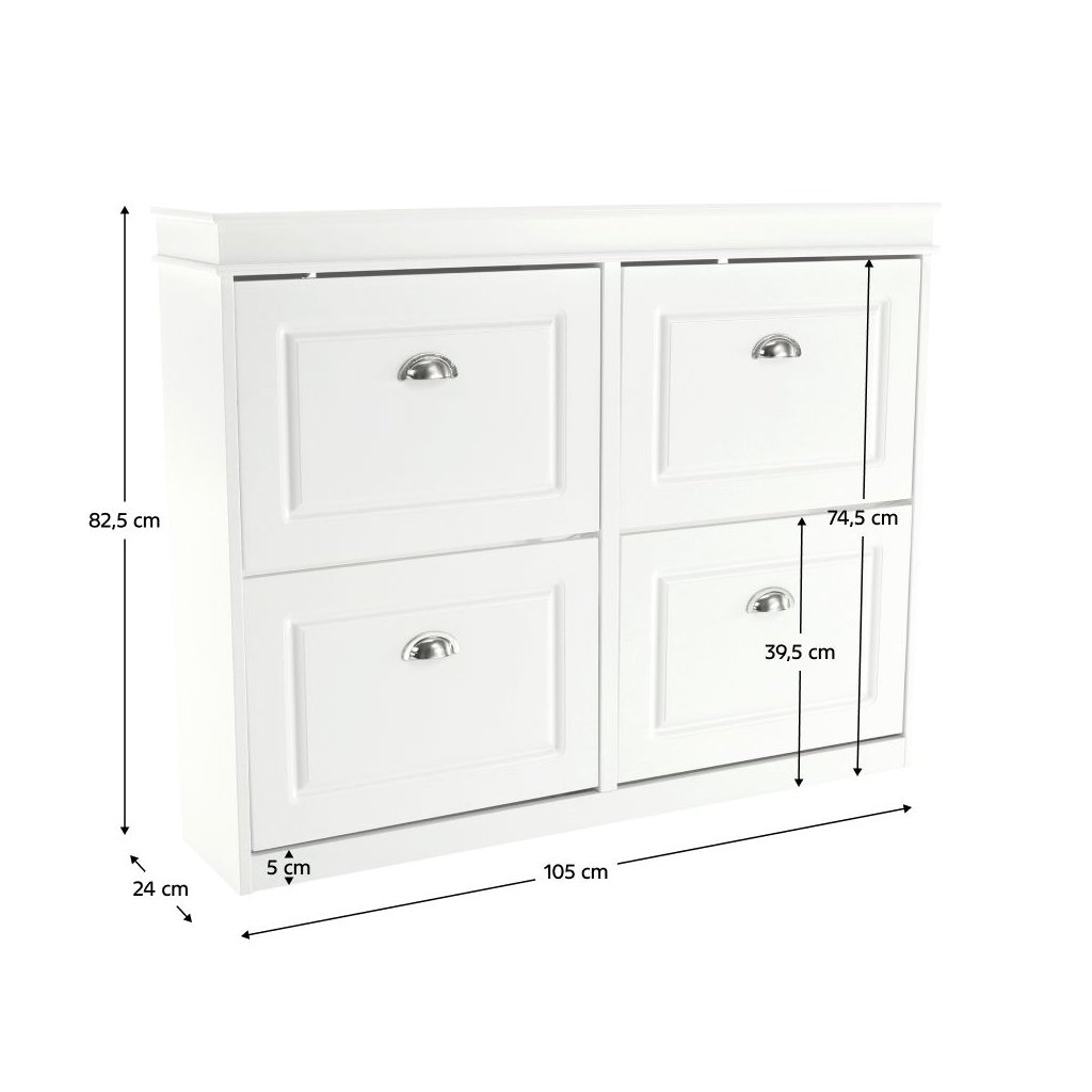 Biely botník SEBER 5 ponúka praktické riešenie na uskladnenie obuvi. S rozmermi 105x24x82,5 cm a výklopným dizajnom je ideálny pre úsporu priestoru. Dodáva sa v demonte.