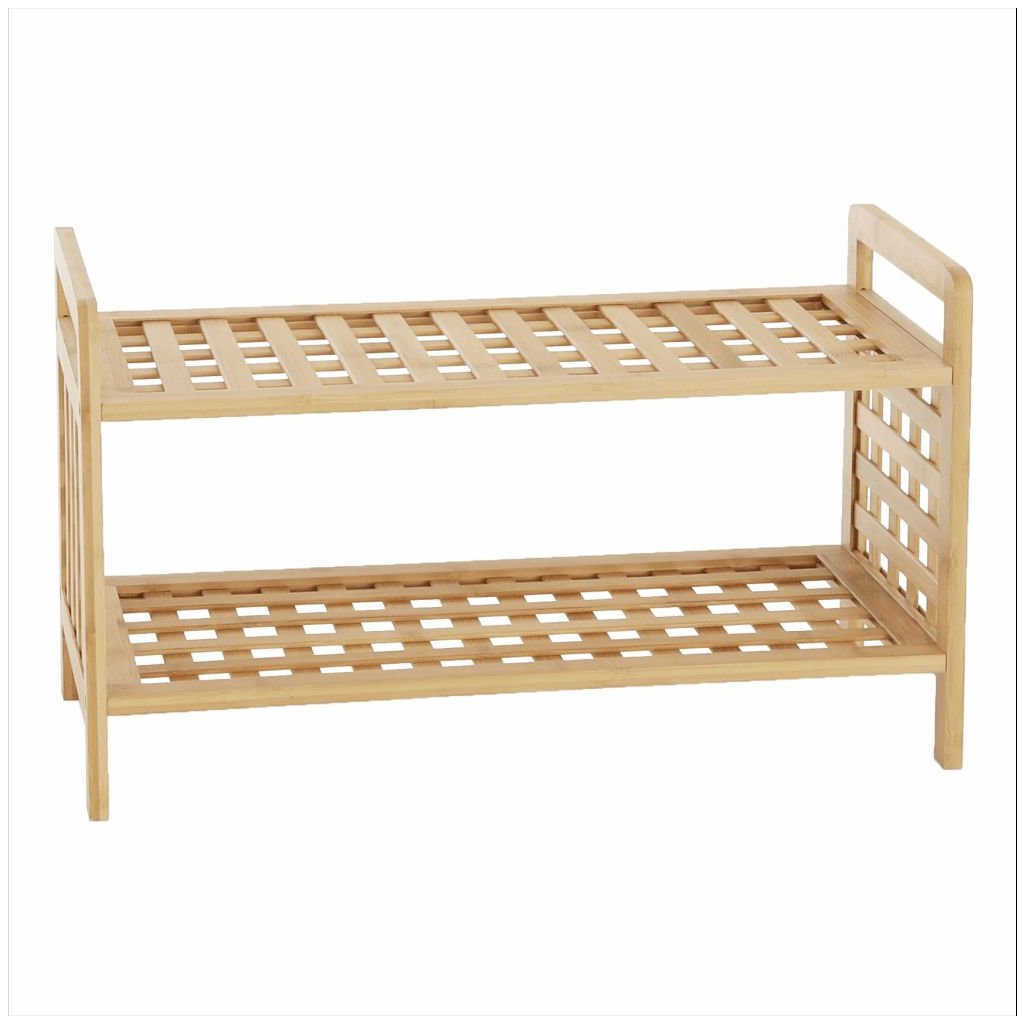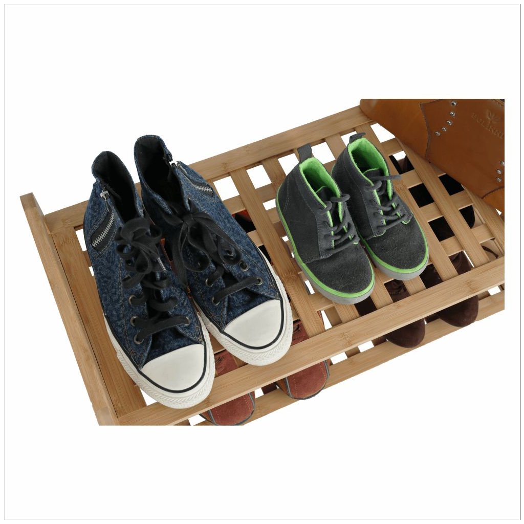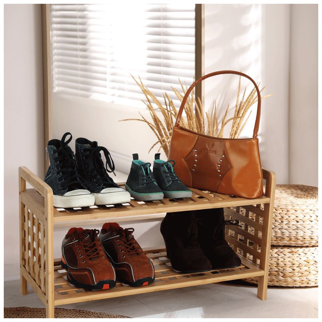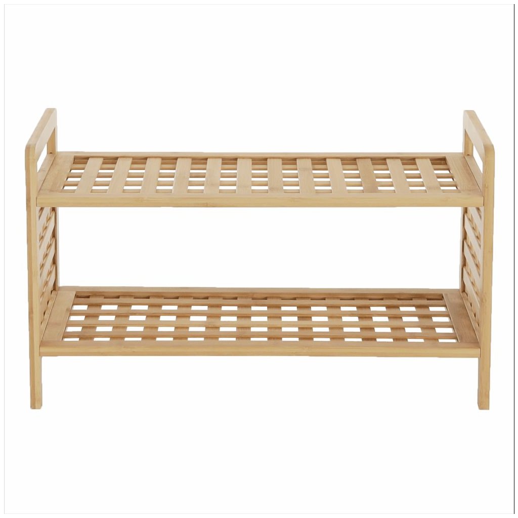 Praktický botník z lakovaného bambusu s rozmermi 60x27,5x35 cm. Dve police s výškou medzi nimi 22 cm ponúkajú dostatok priestoru na obuv. Dodávané v demonte.