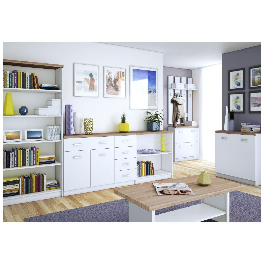 - Moderný dizajn: Elegantná kombinácia bielej a dubu sonoma sa hodí do každého interiéru.
