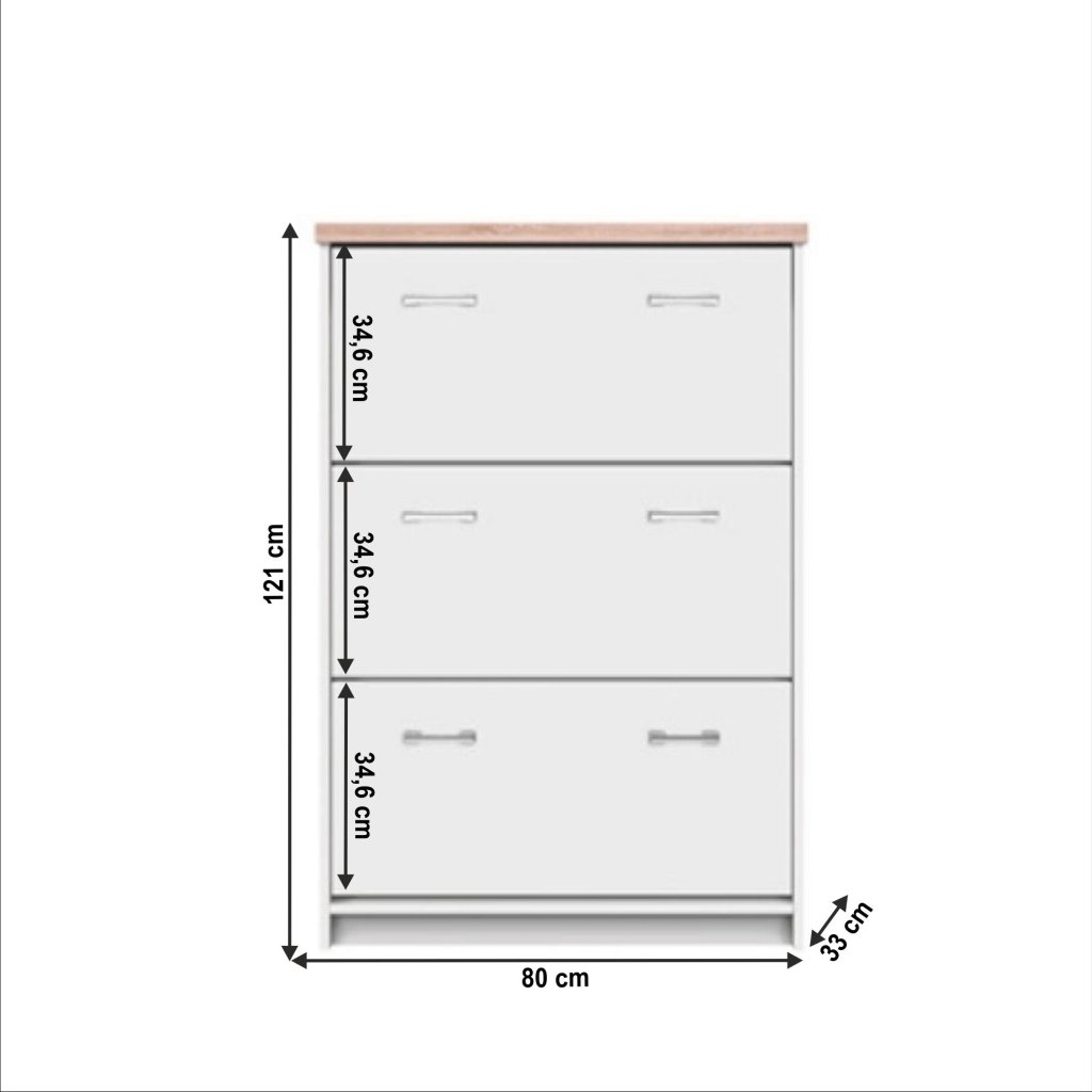 Praktický botník v bielej farbe s dekorom dub sonoma. Rozmery 80x33x121 cm, vyrobený z laminovanej DTD. Dodávaný v demonte, ideálny pre organizáciu vašich topánok.