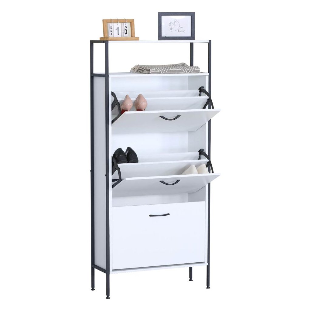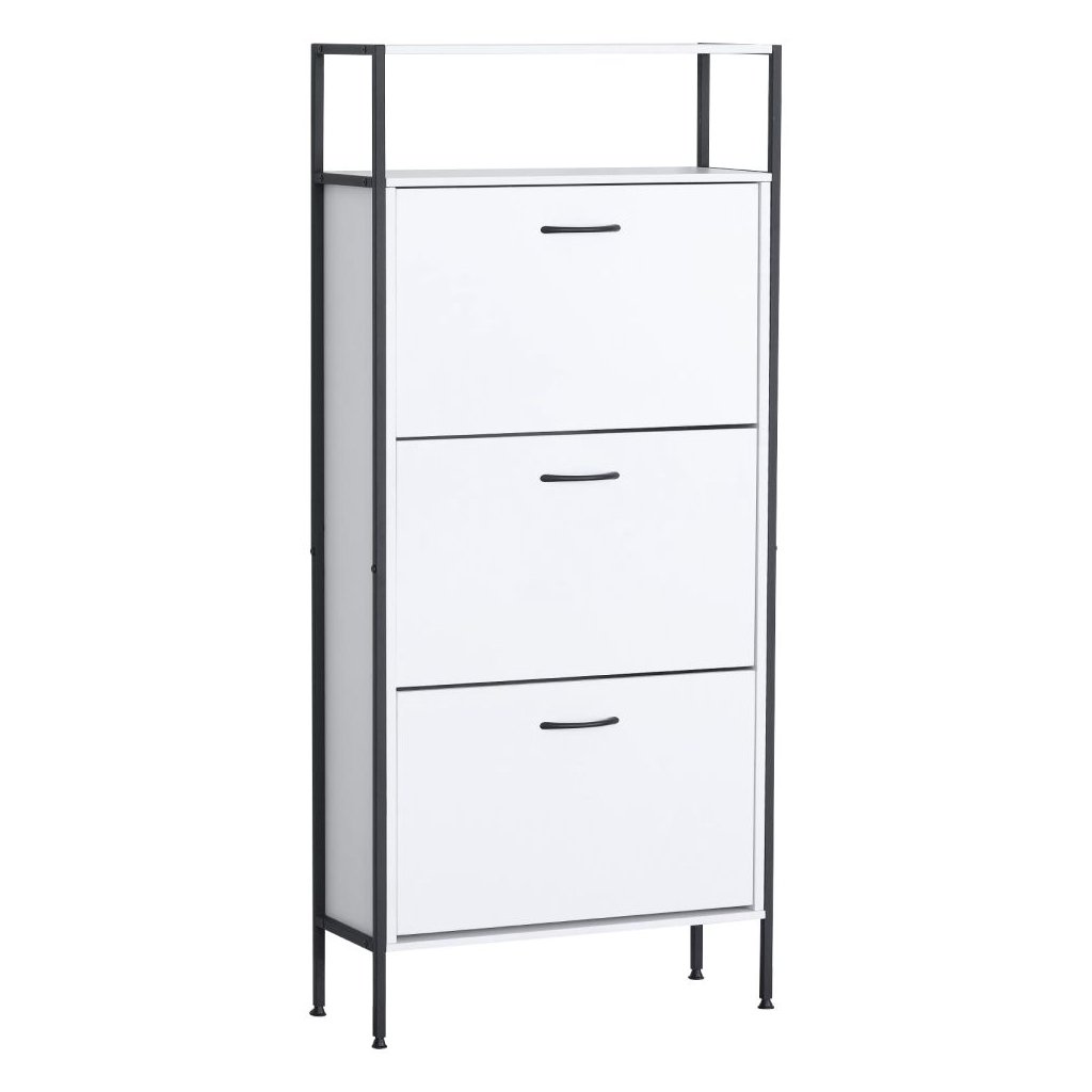 Vyrobený z kvalitných materiálov ako drevotrieska, oceľ a plast, ponúka vysokú odolnosť a stabilitu. Vďaka trom výklopným šuplíkom a dostatočnému priestoru na uskladnenie, si môžete byť istí, že vaše topánky budú vždy usporiadané a na dosah ruky.