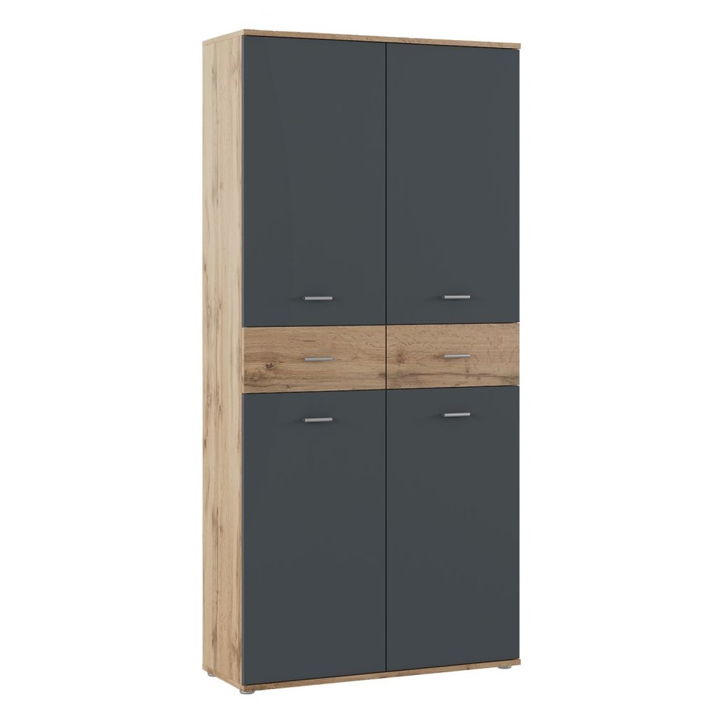 Vyrobený z kvalitného laminovaného DTD, botník ponúka dlhú životnosť a odolnosť voči každodennému používaniu. S dvoma priestrannými zásuvkami a policami je skvelým riešením pre uskladnenie všetkých vašich topánok a doplnkov. Odporúčame ho pripevniť k stene pre maximálnu bezpečnosť a stabilitu.