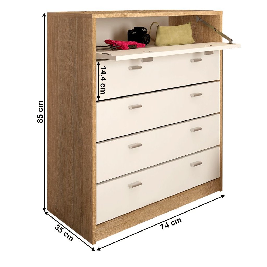 Botník VIVAT 4 v kombinácii dub sonoma a biela ponúka päť výklopných úložných priestorov. Rozmery 74x35x85 cm, hrúbka materiálu 16 mm. Dodávané v demonte. Kvalitný slovenský výrobok.