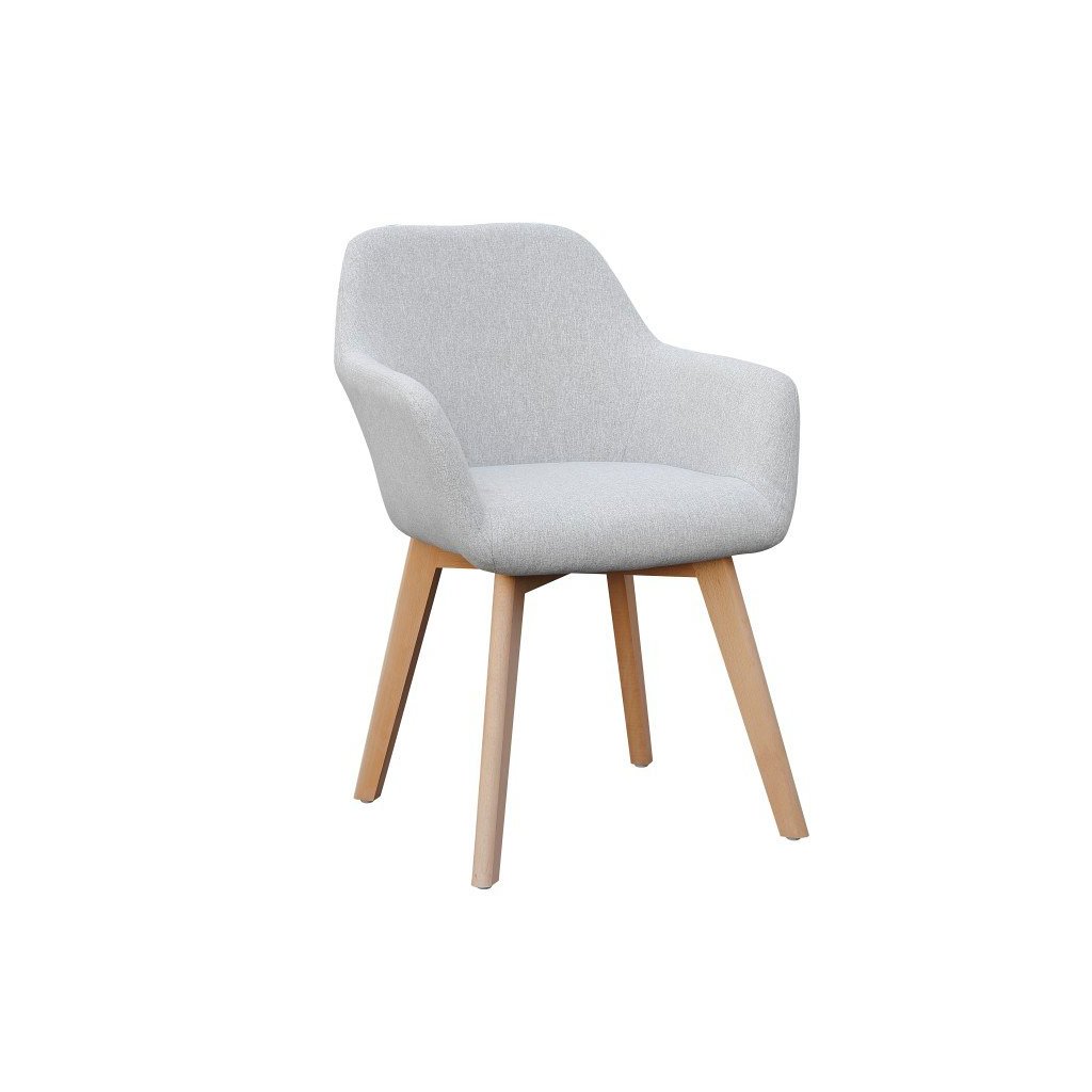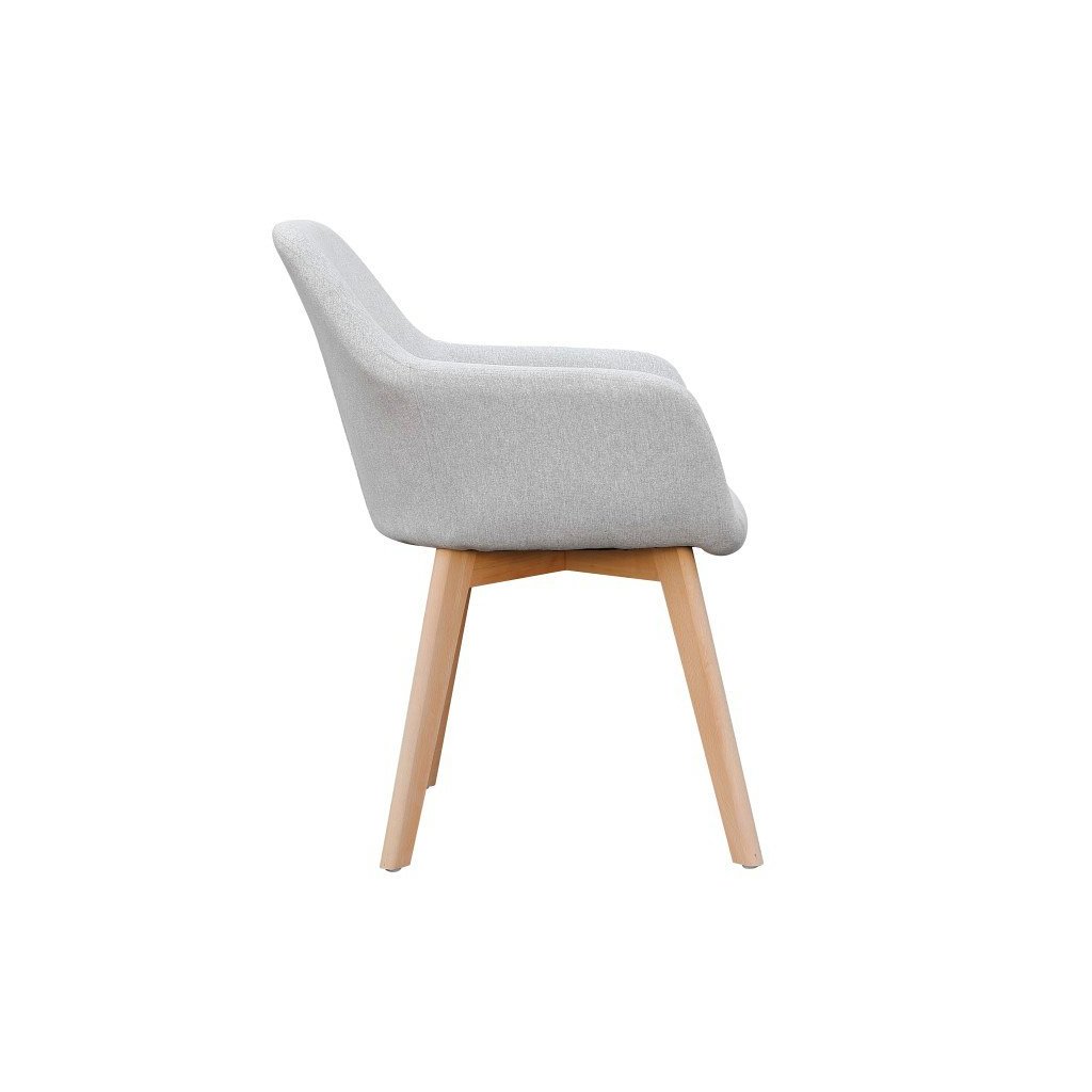 Dizajnové kreslo CLORIN v svetlosivej látke s elegantnými bukovými nohami ponúka pohodlie a štýl. Ideálne pre moderný interiér. Rozmery: 56x60x82 cm, výška sedu 46 cm. Nosnosť 100 kg. Dodávané v demonte