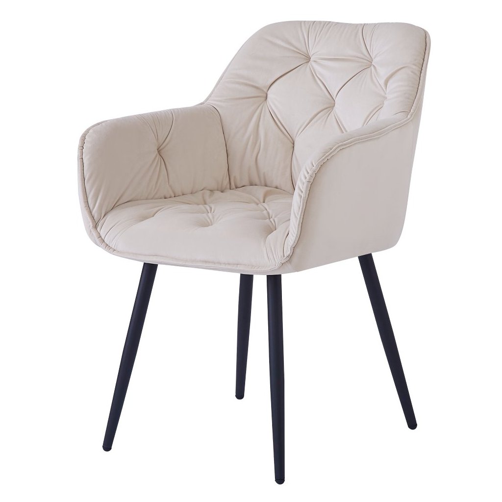 Dizajnové kreslo FEDRIS v béžovej zamatovej látke je elegantným doplnkom vášho interiéru. Stabilitu zabezpečujú čierne kovové nohy a prešívaný povrch dodáva honosnosť. Rozmery: 61,5x59,5x80 cm.