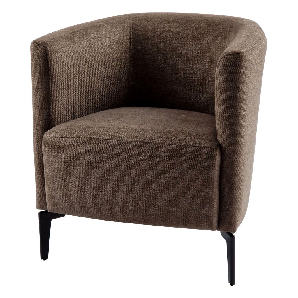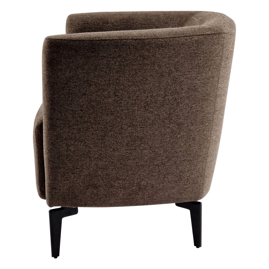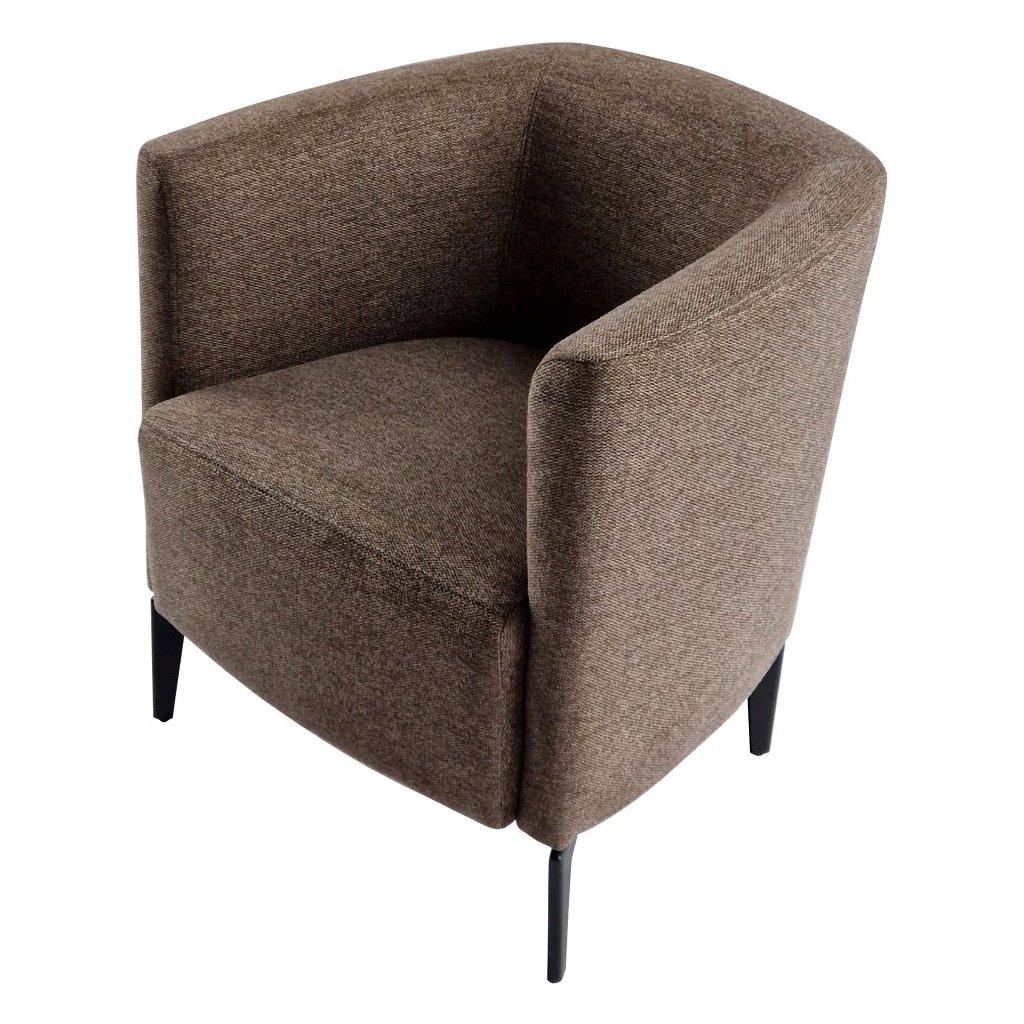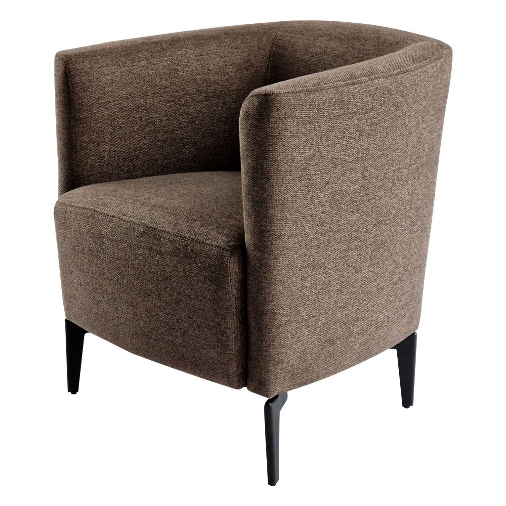 Dizajnové kreslo KAPY v hnedej látke Matana elegantne doplní váš interiér. Celočalúnené, pohodlné a stabilné na čiernych kovových nožičkách. Ideálne do rohu alebo do stredu miestnosti.