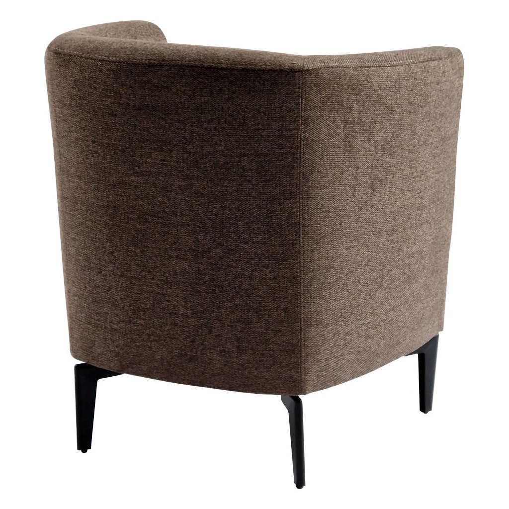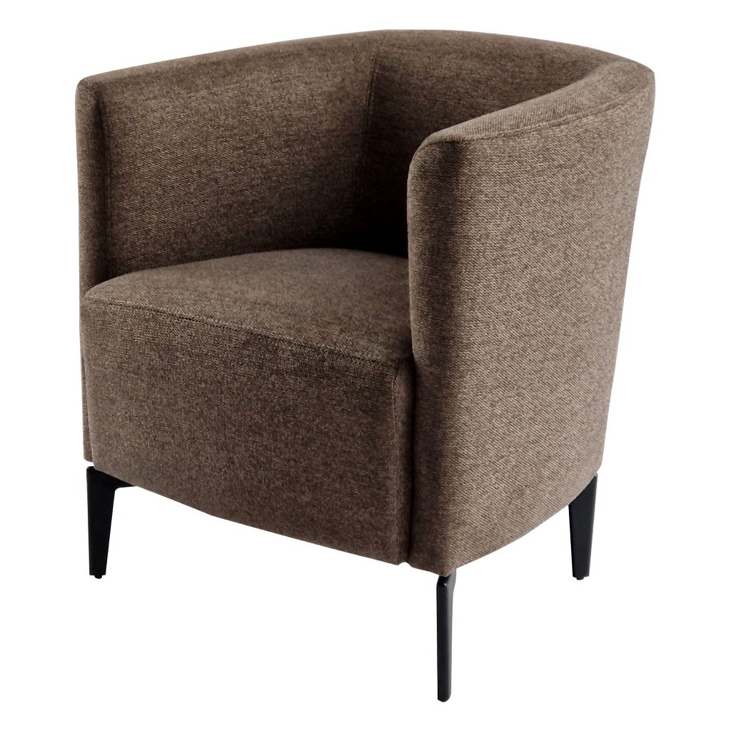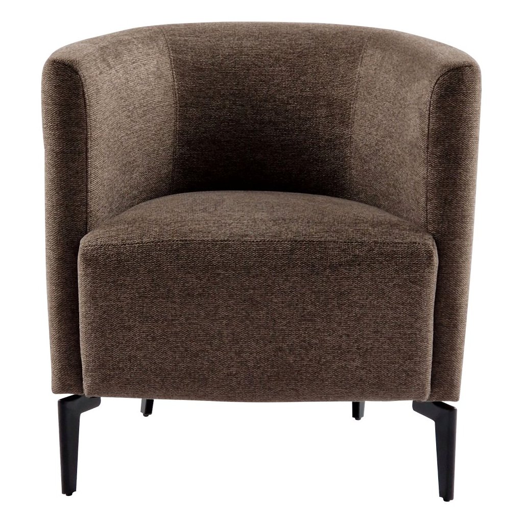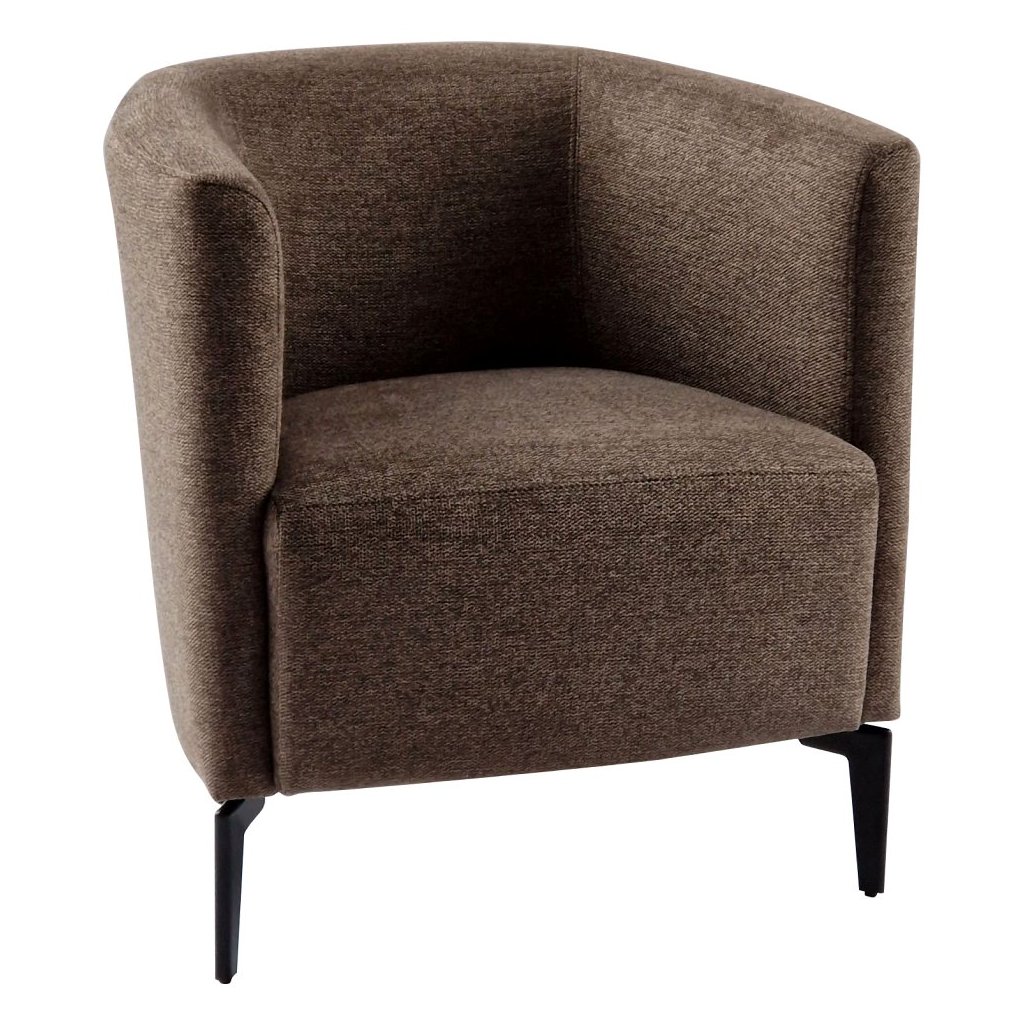 Dizajnové kreslo KAPY v hnedej látke Matana elegantne doplní váš interiér. Celočalúnené, pohodlné a stabilné na čiernych kovových nožičkách. Ideálne do rohu alebo do stredu miestnosti.