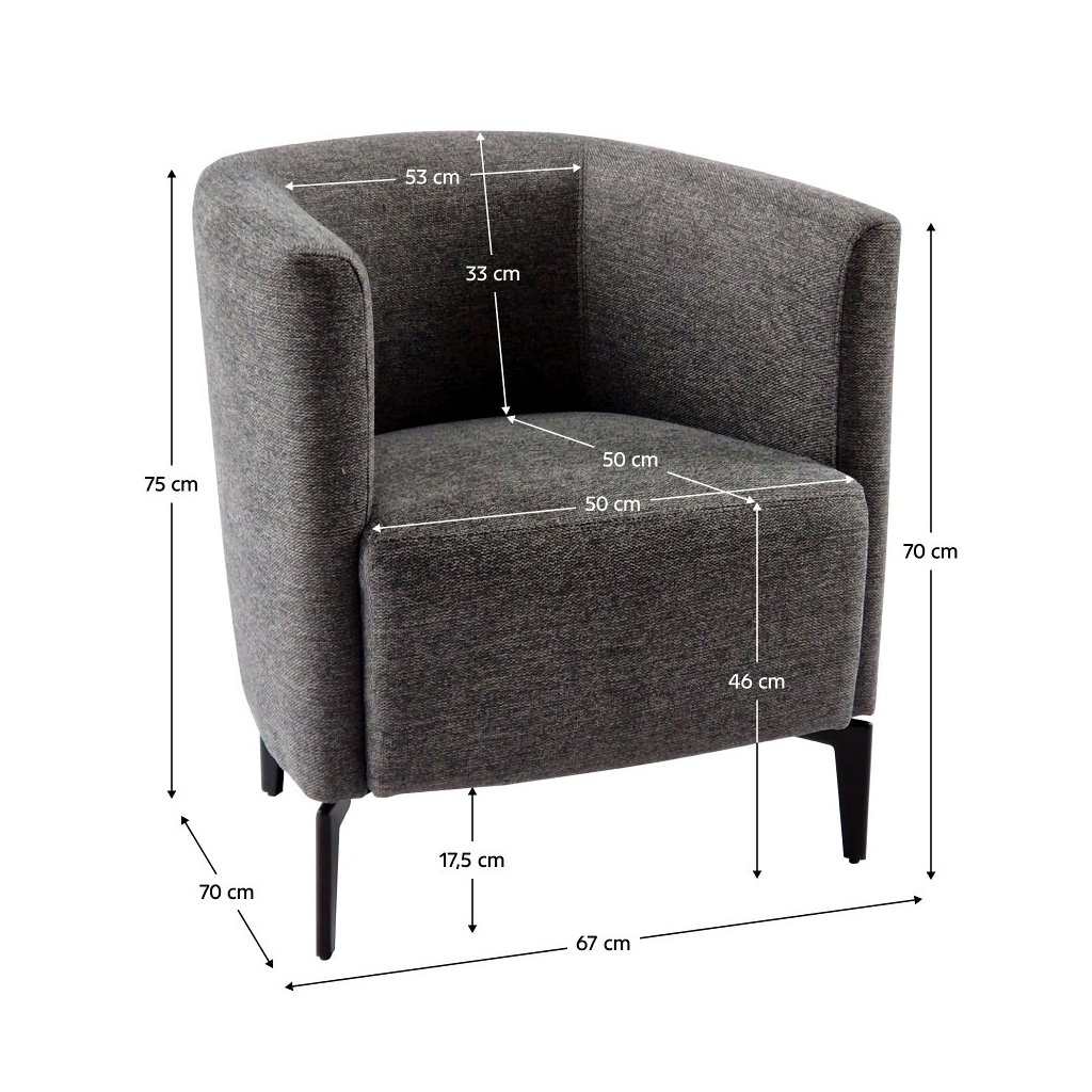 Dizajnové kreslo KAPY v sivom prevedení je ideálnym doplnkom pre váš interiér. Celočalúnené, pohodlné a stabilné, s čiernymi kovovými nožičkami. Vhodné do každého priestoru.