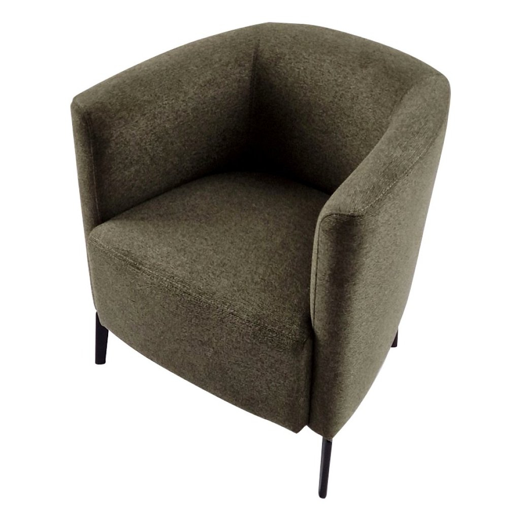 Dizajnové kreslo KAPY v zelenom prevedení vnesie do vášho interiéru štýlovosť a pohodlie. Celočalúnené, s čiernymi kovovými nožičkami, ponúka optimálne sedenie a stabilitu.