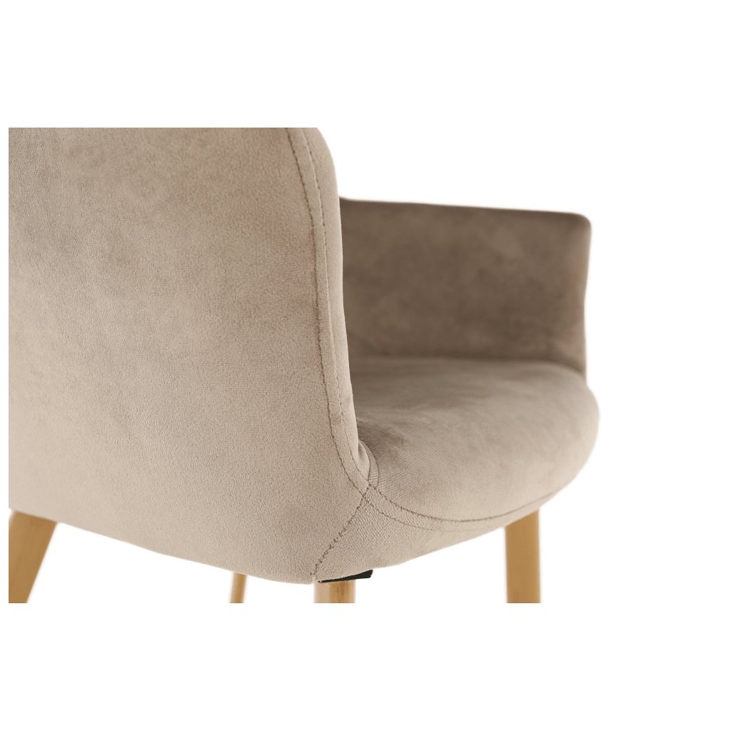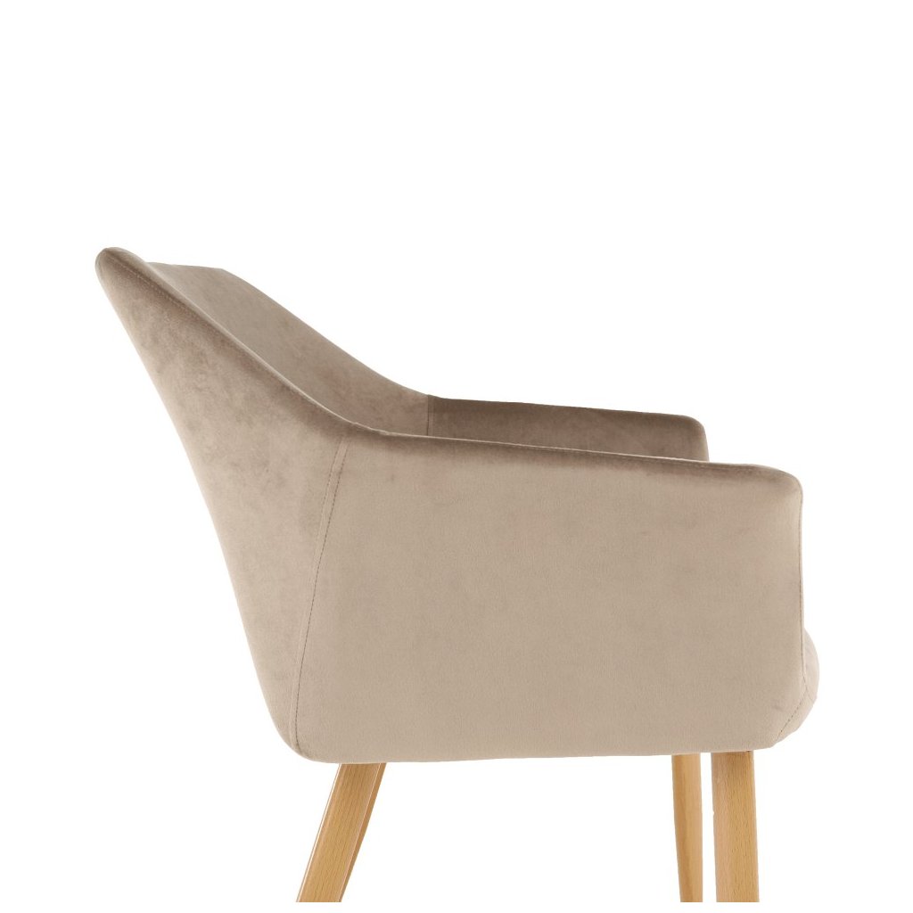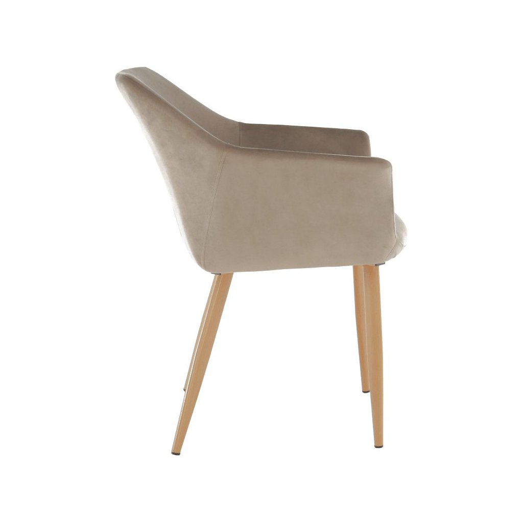 Dizajnové kreslo ODOVEL v hnedo-zamatovej látke kombinuje pohodlie a eleganciu. Kovové nohy a luxusný vzhľad skvele doplnia váš interiér. Rozmery: 56x63x78 cm. Dodávané v demonte.