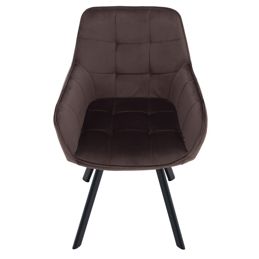 Dizajnové kreslo PETIN v hnedé zamatovej látke osvieži váš interiér. Komfort zabezpečujú opierky a dekoratívne prešitie. Stabilitu mu dodávajú čierne kovové nožičky. Ideálne pre každý domov!