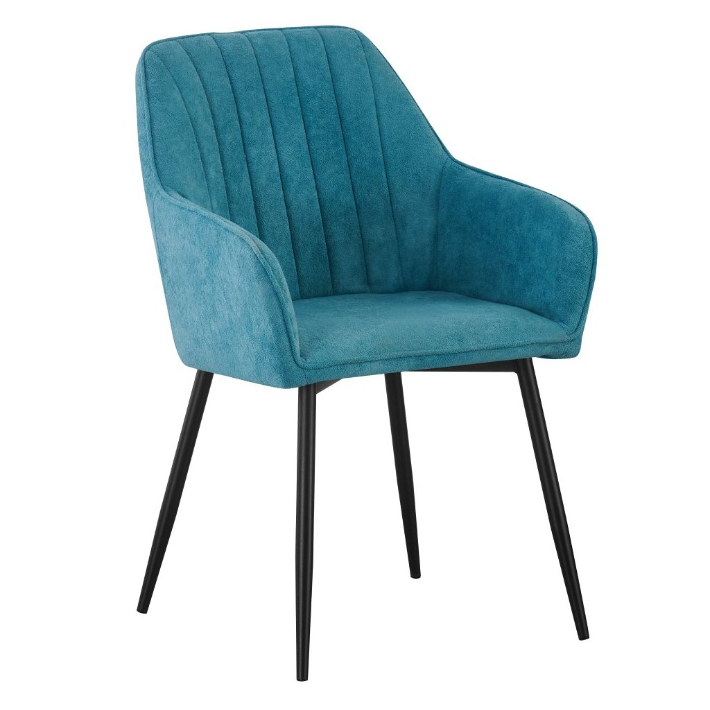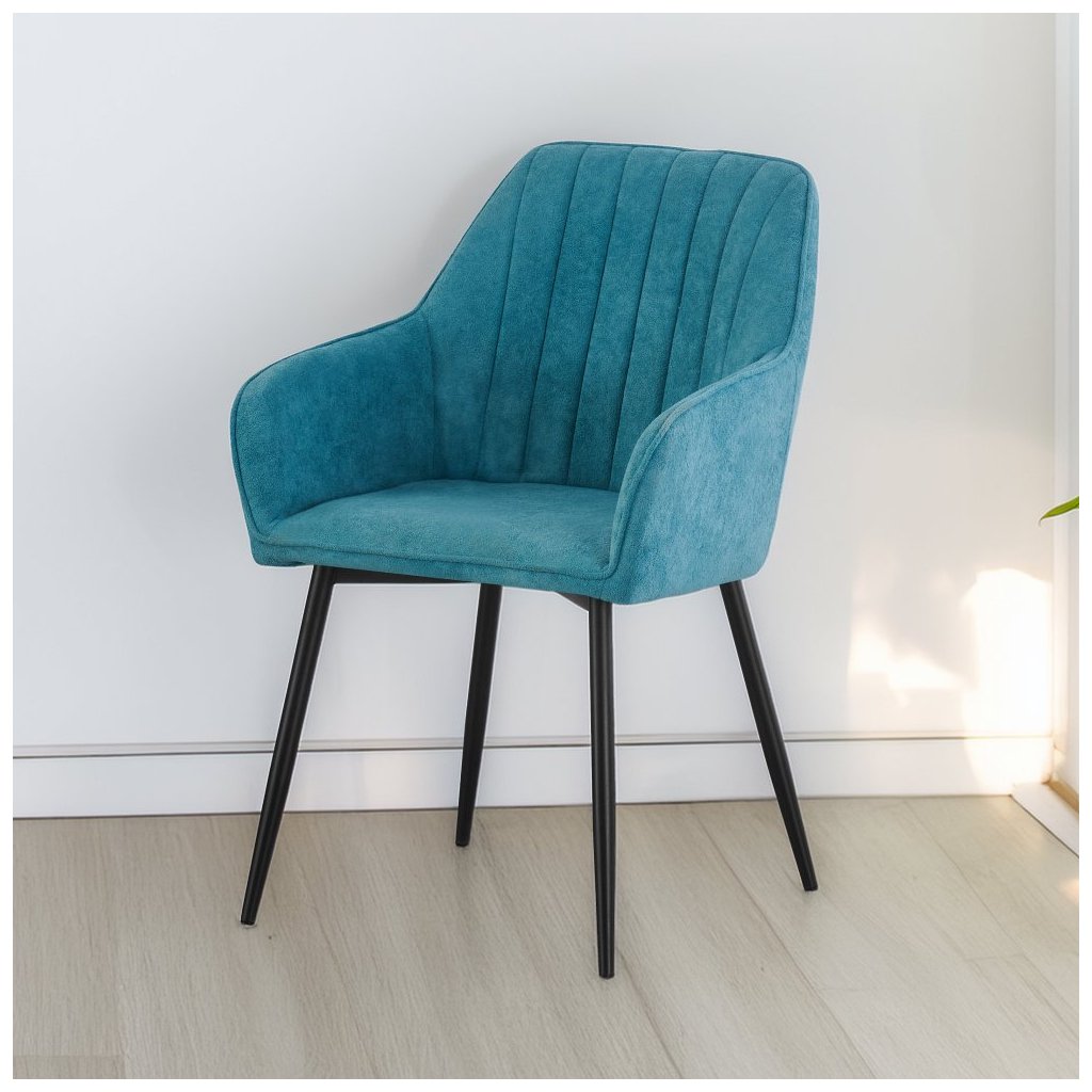 Kreslo je čalúnené kvalitnou látkou Bouclé, ktorá poskytuje nielen atraktívny vzhľad, ale aj výnimočný komfort. Čierne kovové nohy dodávajú kreslu stabilitu a zaujímavý kontrast, zatiaľ čo opierky na ruky zabezpečujú pohodlné posedenie aj pri dlhšom používaní.