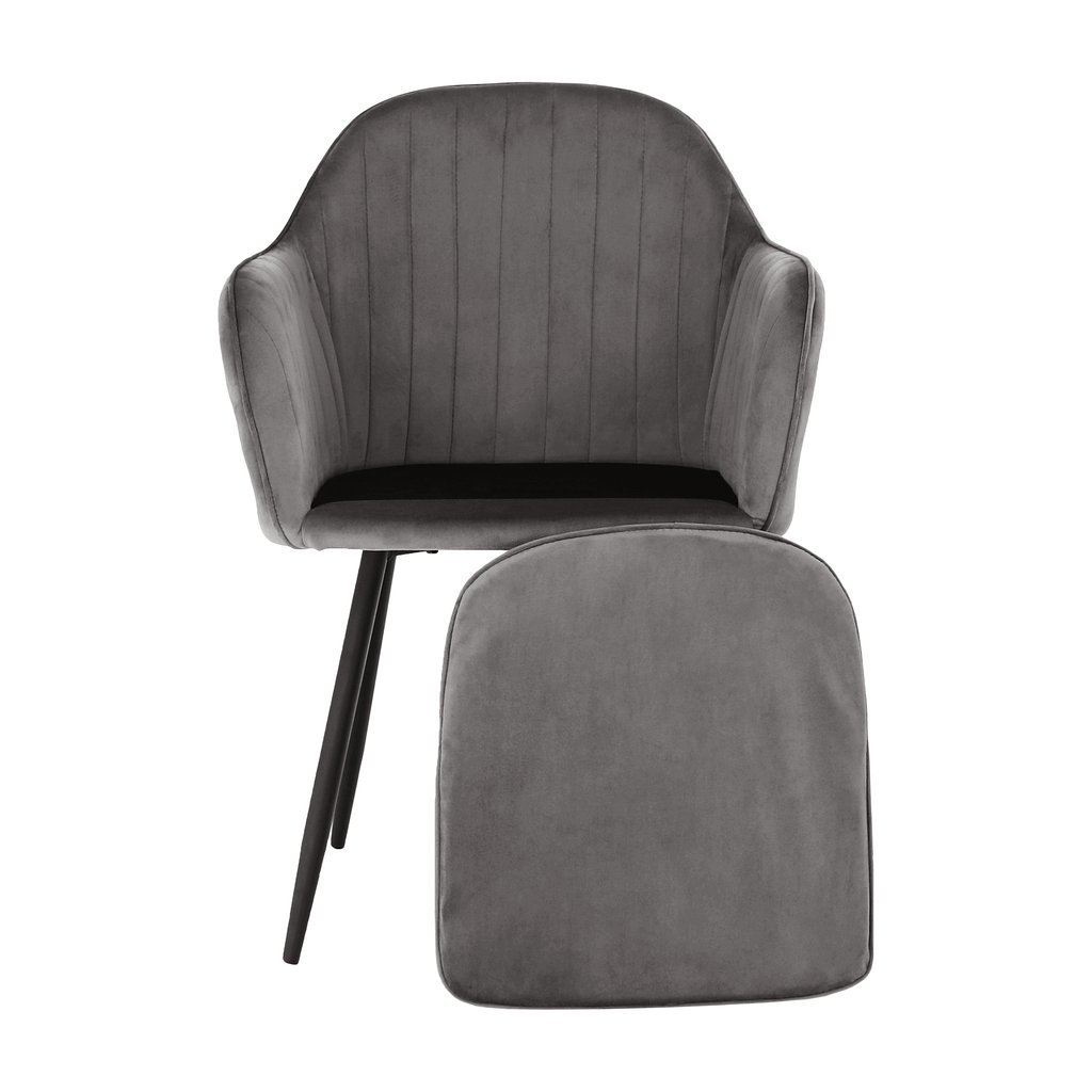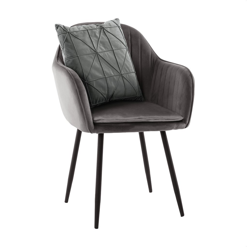 Dizajnové kreslo ZIRKON v hebkom sivom zamatovom prevedení je nielen pohodlné, ale aj štýlové. Stabilitu zabezpečujú čierne kovové nohy. Ideálne pre moderný interiér. Rozmery: 56x55x82 cm.