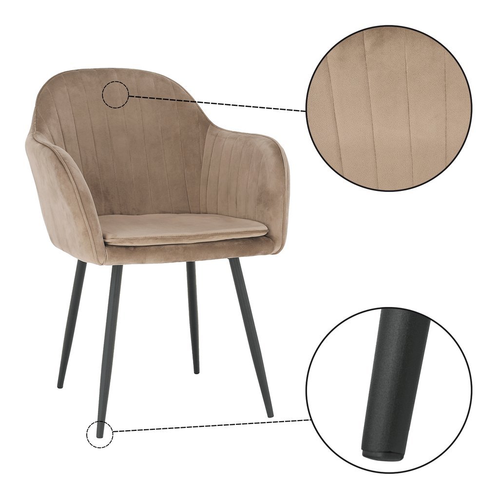 Elegantné dizajnové kreslo ZIRKON v sivohnedej zamatovej látke dodá vášmu interiéru šarm. Stabilitu zabezpečujú čierne kovové nohy, pohodlné sedenie a dekoratívne prešívanie. Rozmery: 56x55x82 cm.