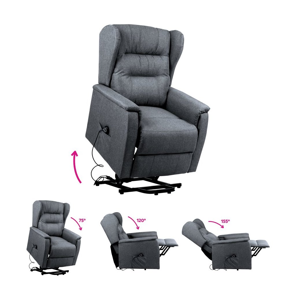 Hlavné prednosti Elektricky polohovacie kreslo - DOURO, sivá látka