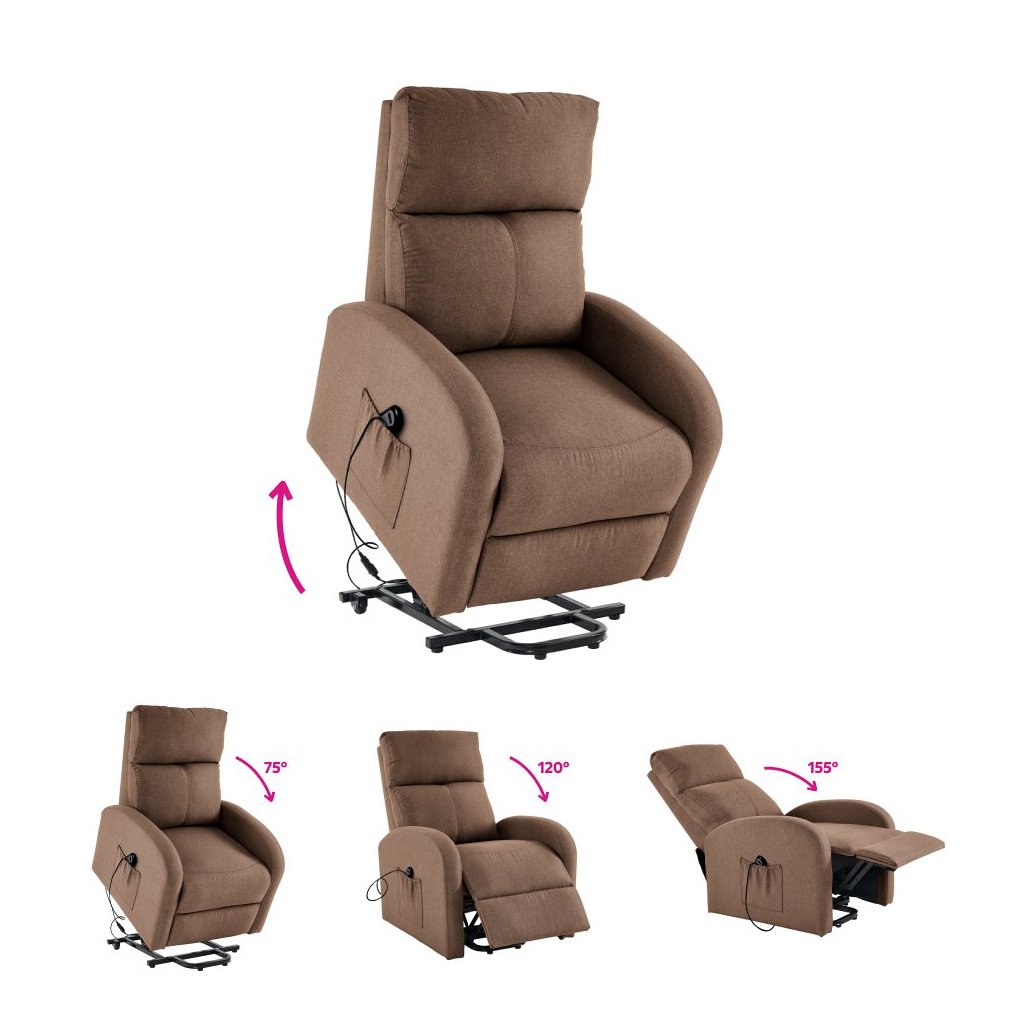 - Elektrická funkcia zdvíhania umožňuje jednoduché a pohodlné vstávanie bez námahy, ideálne pre seniorov a osoby s obmedzenou pohyblivosťou.