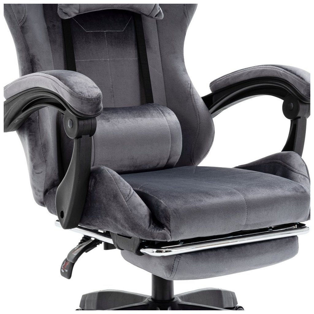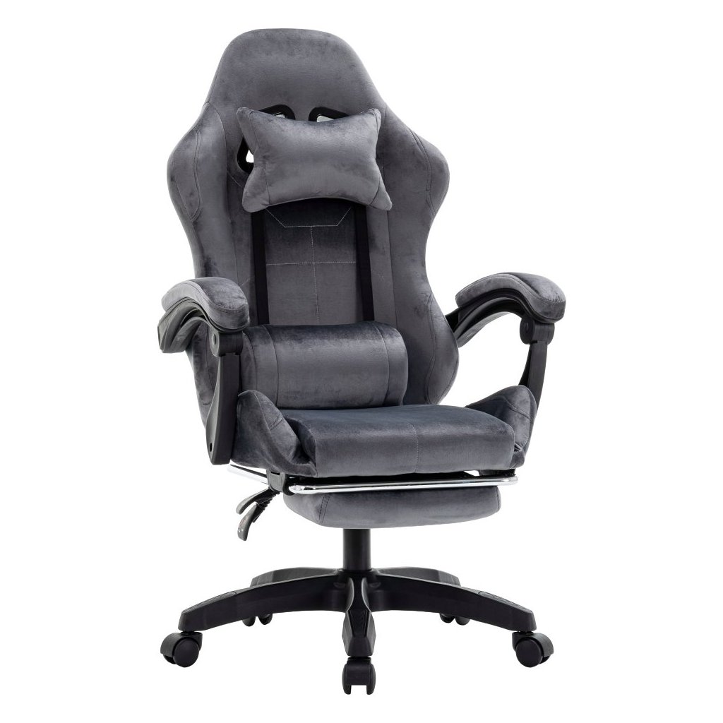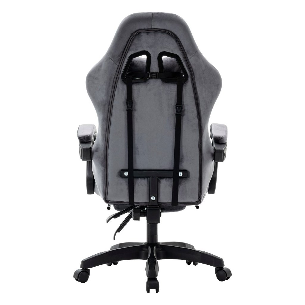 Herné kreslo LOPES v sivej látke kombinuje moderný dizajn s maximálnym komfortom. Nastaviteľné opierky a výsuvná podnož zabezpečujú oporu pri práci aj hre. Univerzálne kolieska umožňujú hladký pohyb n
