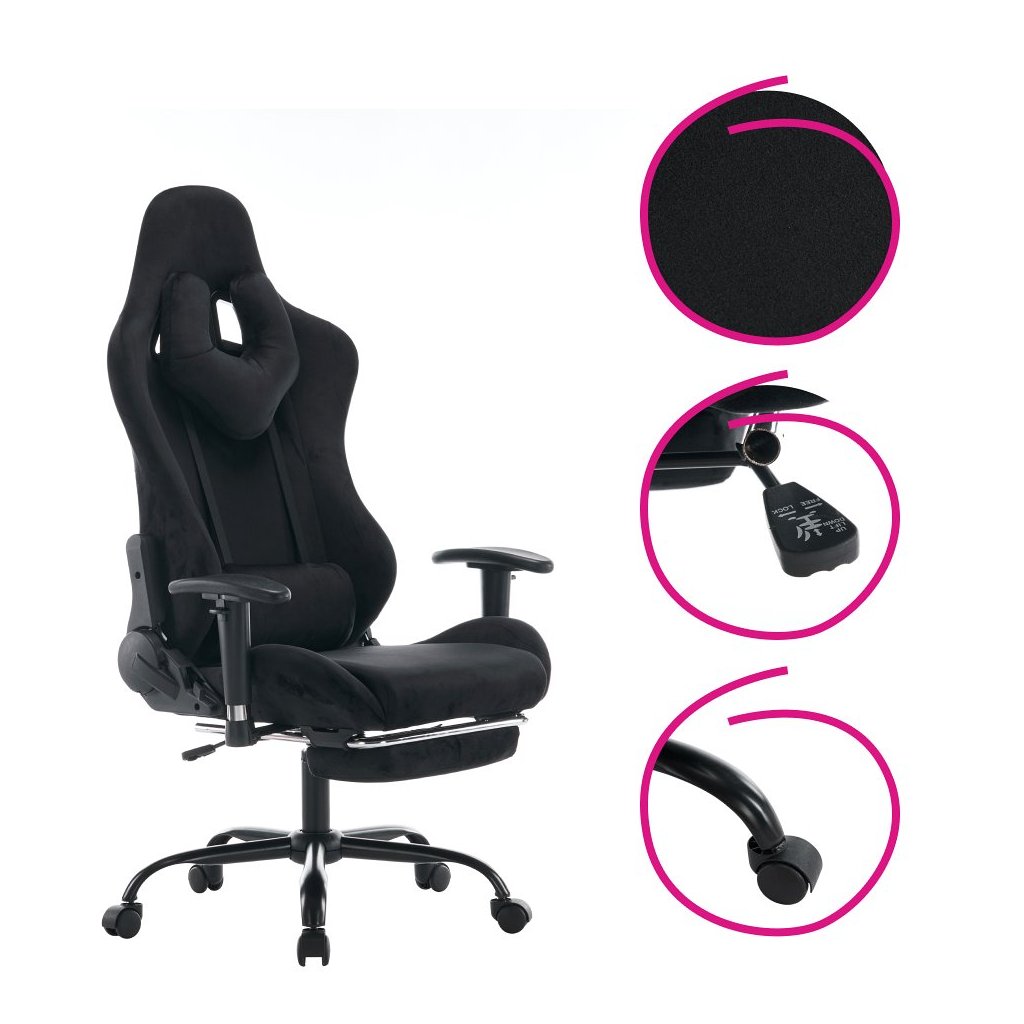 Hlavné prednosti Herné kreslo - SALOP, Čierna zamatová látka