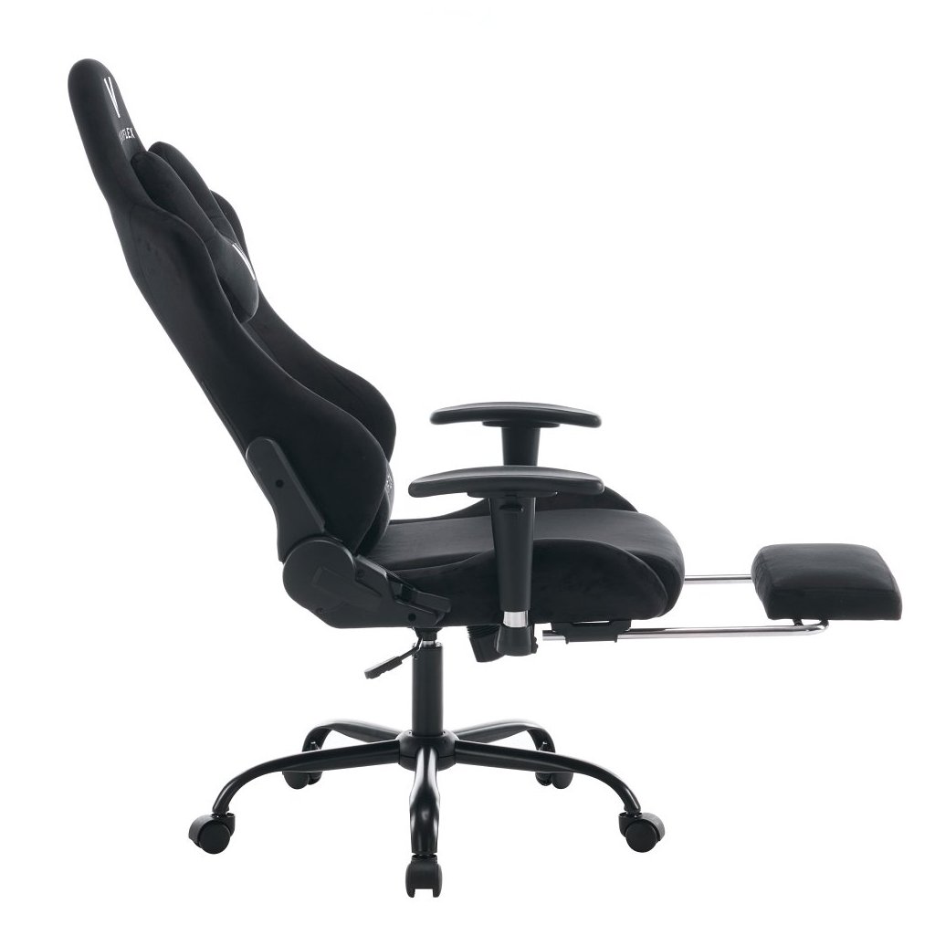 Herné kreslo SALOP v elegantnej čiernej zamatovej látke ponúka maximálny komfort pri práci a hraní. S nastaviteľnou opierkou hlavy a bedrovou opierkou, výsuvnou podnožou a univerzálnymi kolieskami je