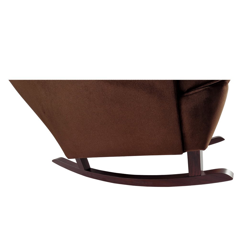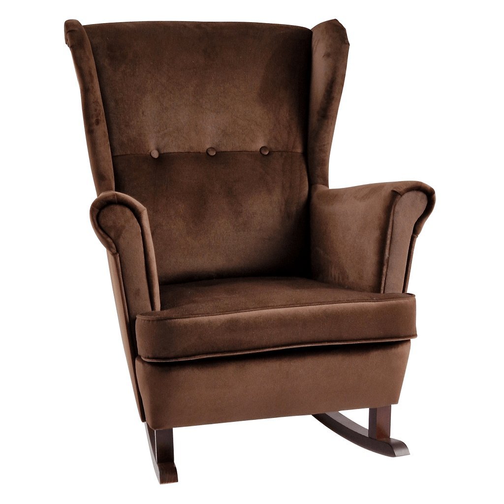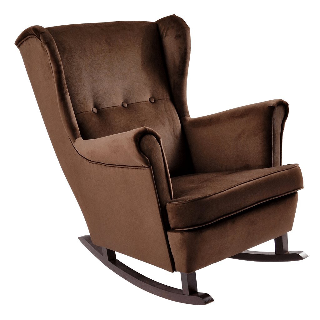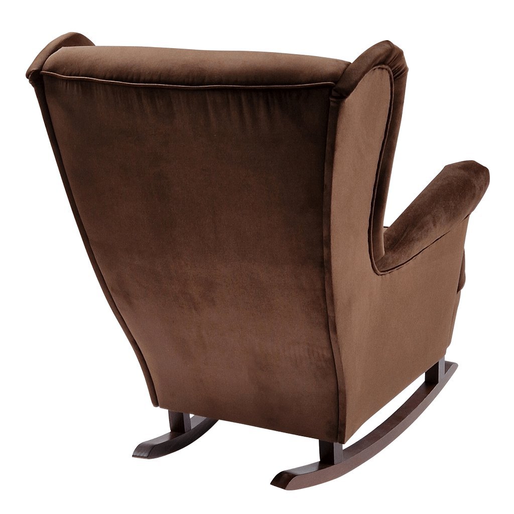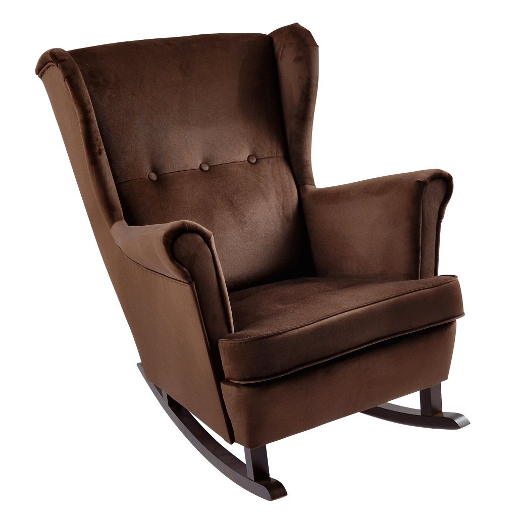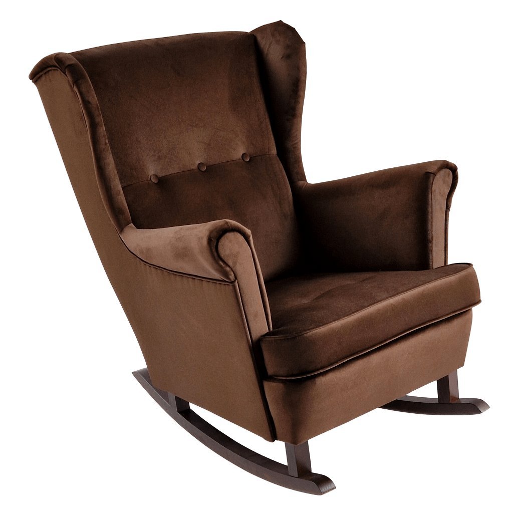 Hojdacie kreslo TEJA v hnedej látke kombinuje pohodlie a štýlový dizajn. Vysoká opierka a mohutné opierky rúk zabezpečujú dokonalé uvoľnenie. Stabilné drevené nožičky dodávajú eleganciu.