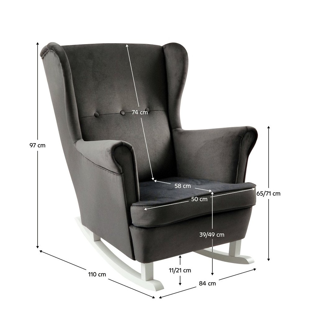 - Praktické rozmery: Hojdacie kreslo sa hodí do rôznych priestorov, či už ide o obývačku alebo spálňu.