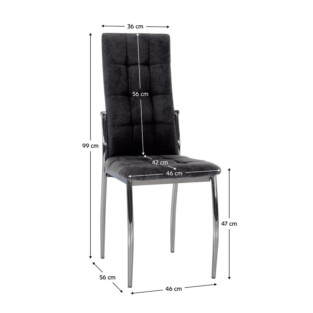 Jedálenská stolička ADORA v sivej látke kombinuje moderný dizajn a pohodlie. Pevná kovová konštrukcia a mäkké sedadlo zaručujú komfort pri každom posedení. Ideálna k akémukoľvek stolu!