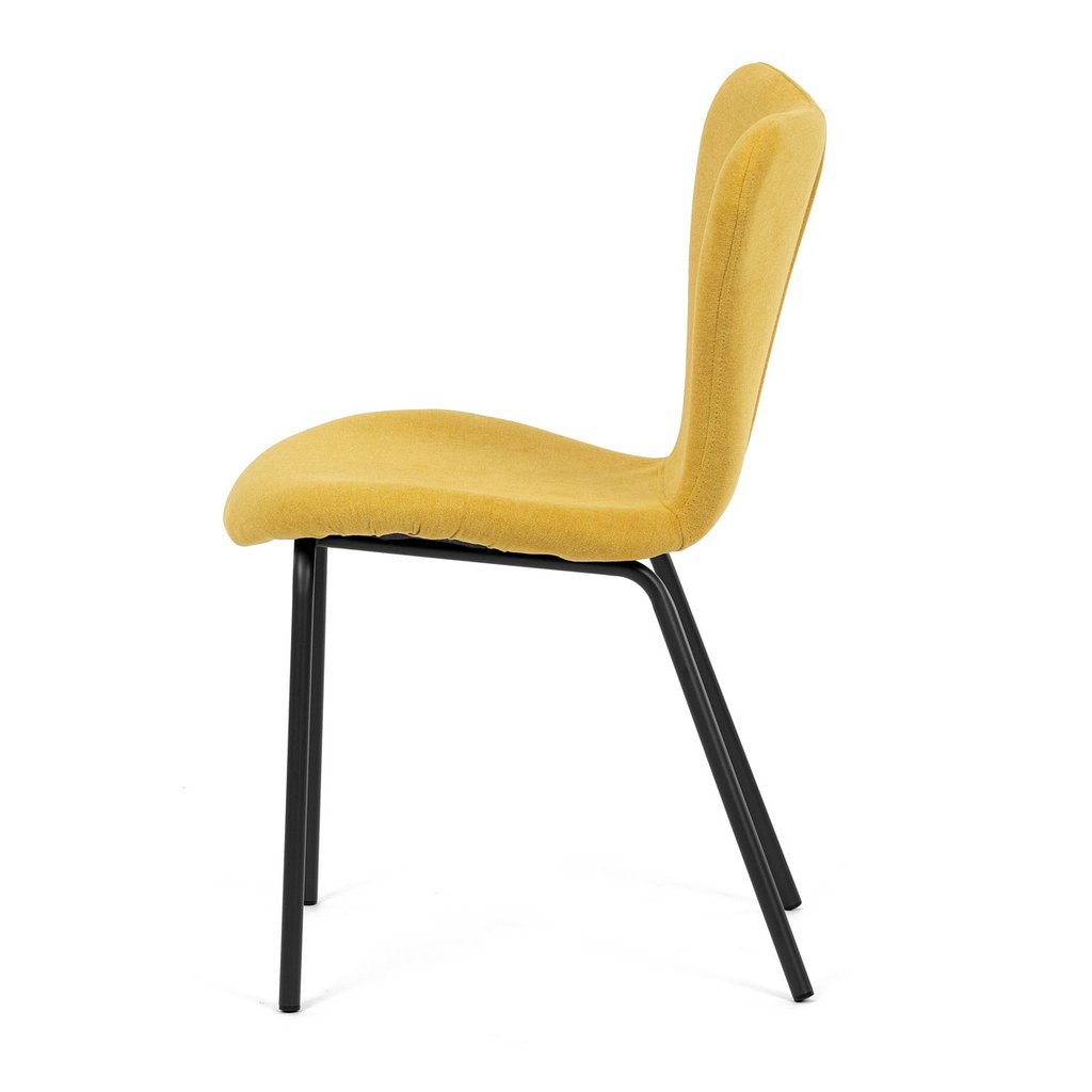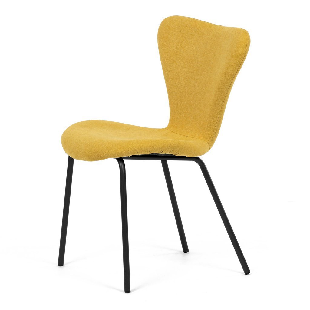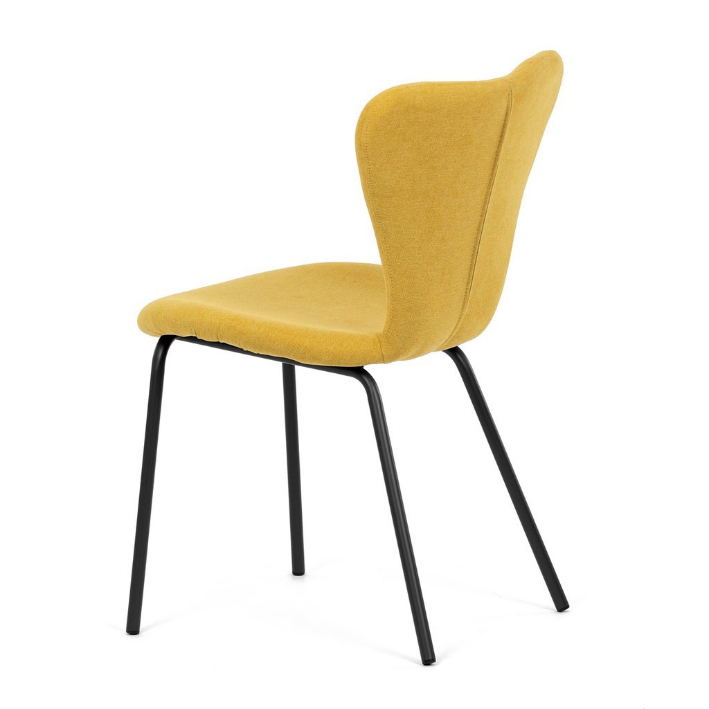 Jedálenská stolička ALENA v žltej látke prinesie svieži závan originality do vášho interiéru svojím atypickým tvarom. Kombinácia komfortu a jedinečného dizajnu z nej robí ideálny doplnok pre každú modernú jedáleň.