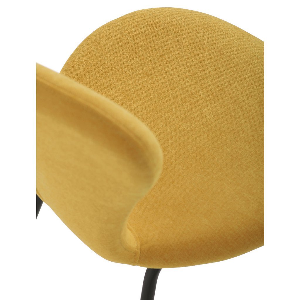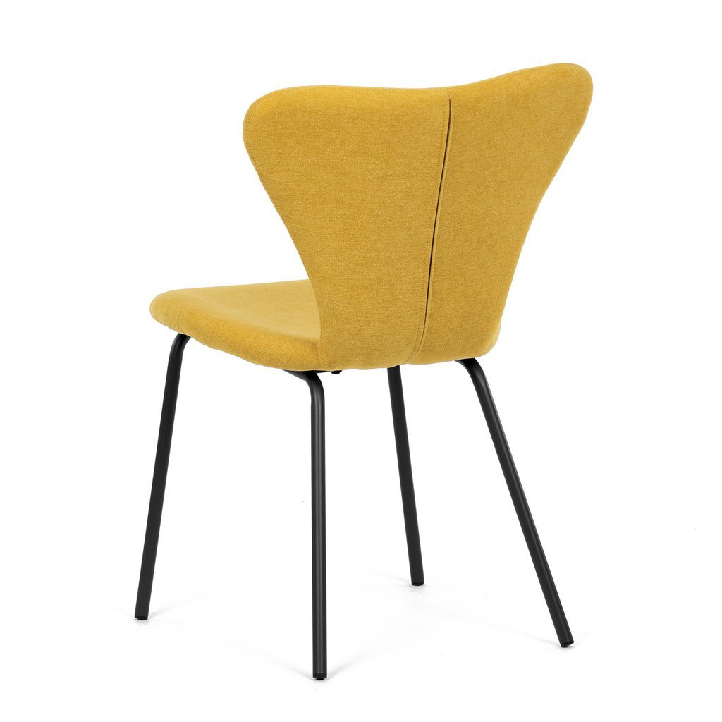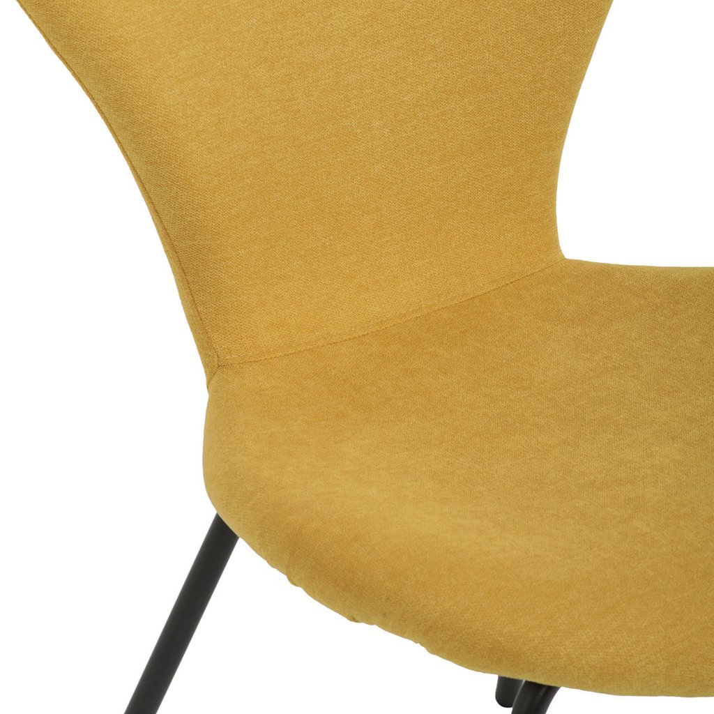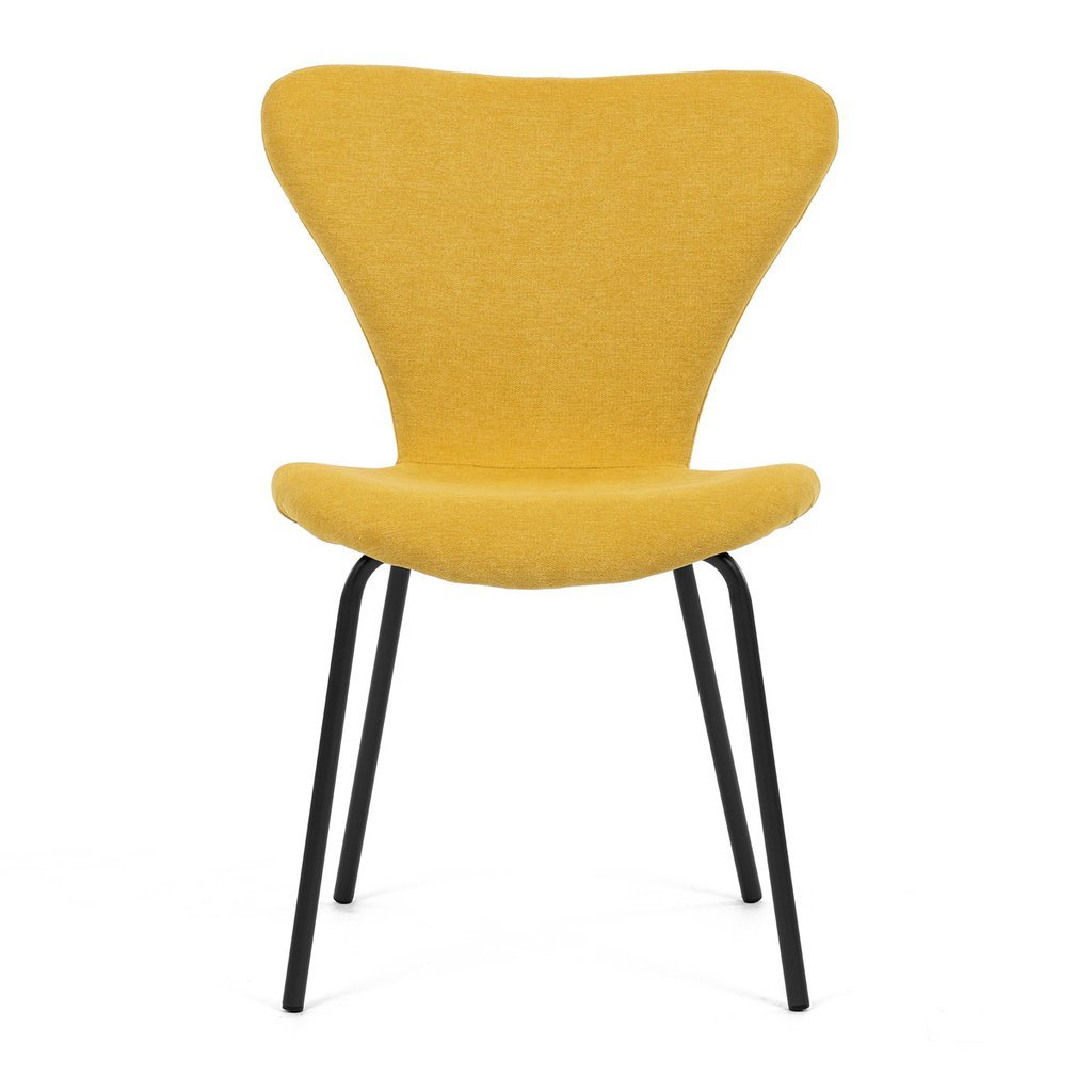 Jedálenská stolička ALENA v žltej látke prinesie svieži závan originality do vášho interiéru svojím atypickým tvarom. Kombinácia komfortu a jedinečného dizajnu z nej robí ideálny doplnok pre každú modernú jedáleň.