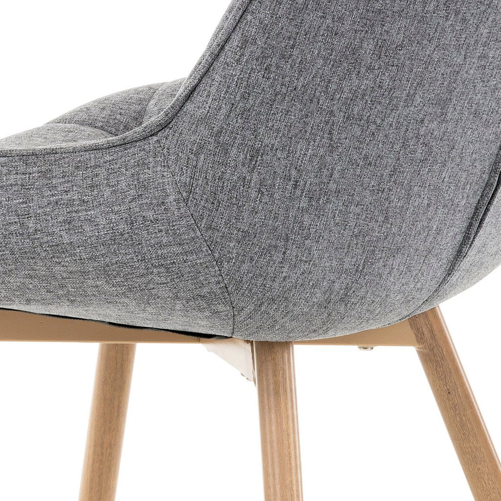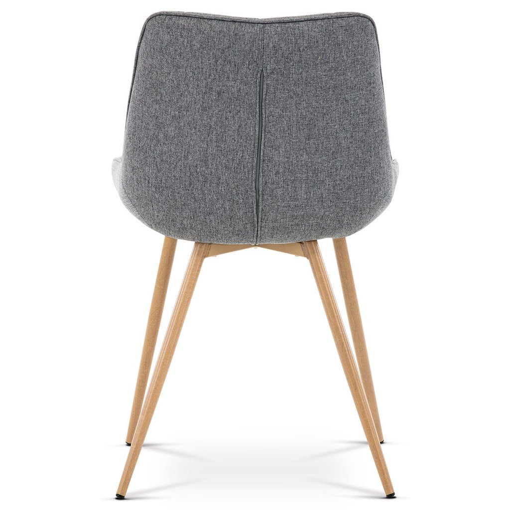 Jedálenská stolička AMELIA kombinuje moderný škandinávsky dizajn s vkusným čalúnením z kvalitnej šedej látky. Jej výrazné dizajnové prešitie pridáva na elegancii a zvýrazňuje tvarované sedadlo a operadlo, čím zaručuje pohodlné sedenie pri každom jedle. Stolička je vybavená pevnými kovovými nohami v imitácii dreva, čo zabezpečuje jej stabilitu a dlhú životnosť.