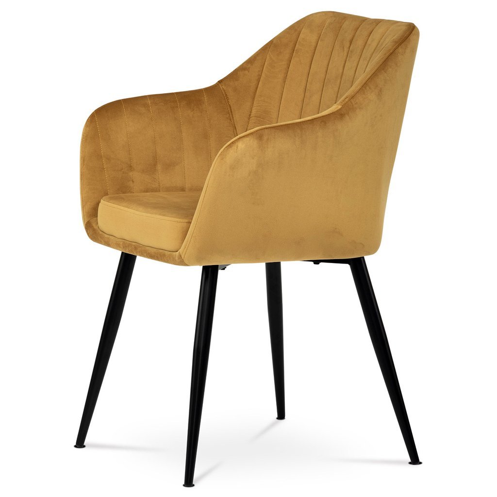 Jedálenská stolička - AMYA, Žltá zamatová látka je ideálnou voľbou pre Váš štýlový interiér!