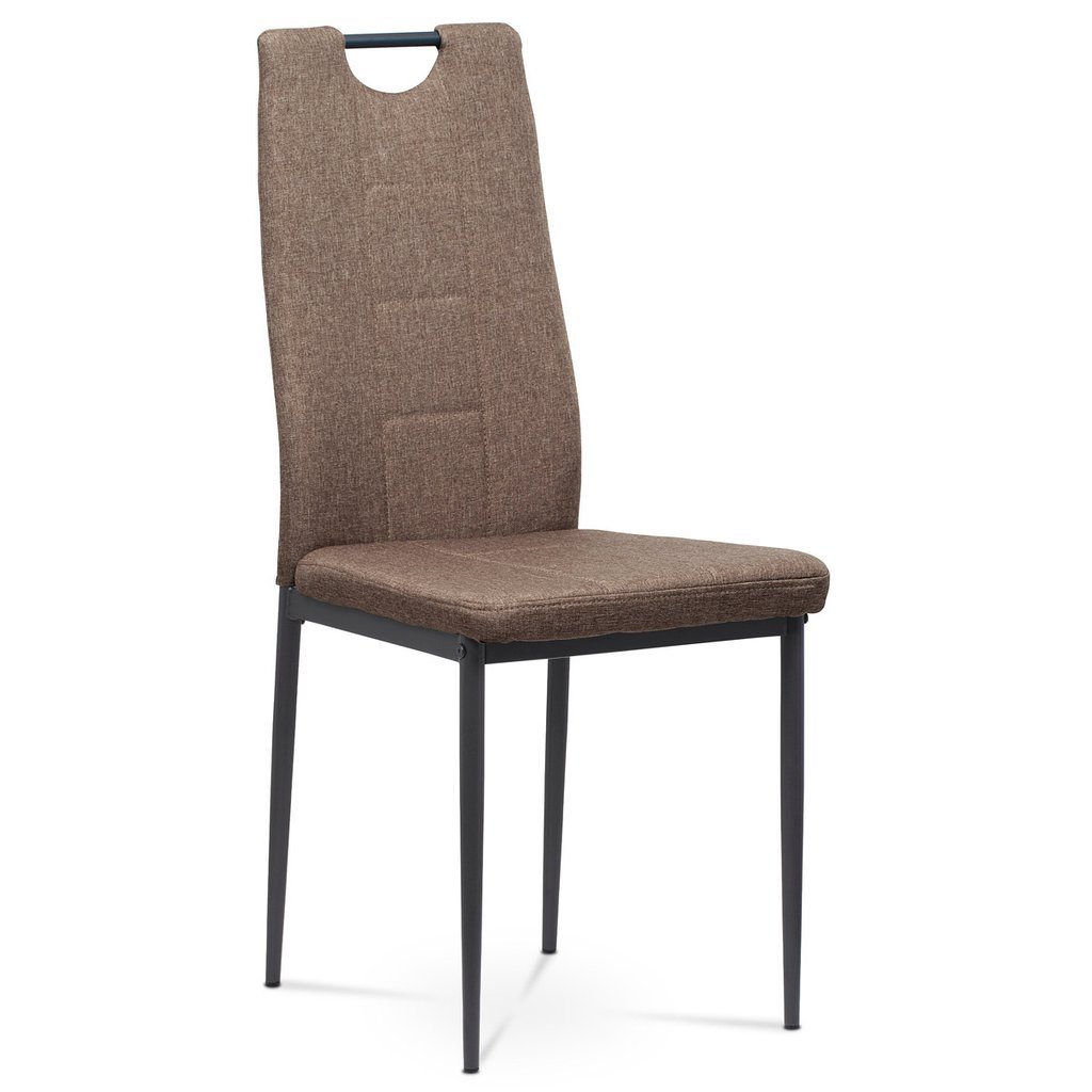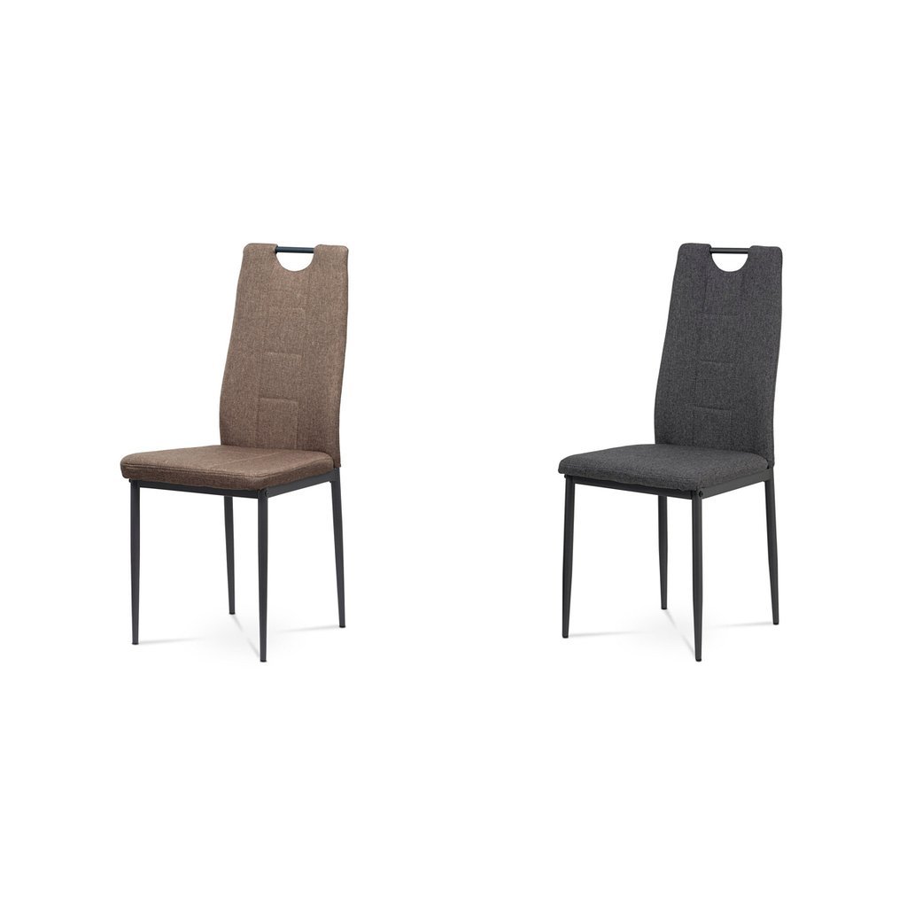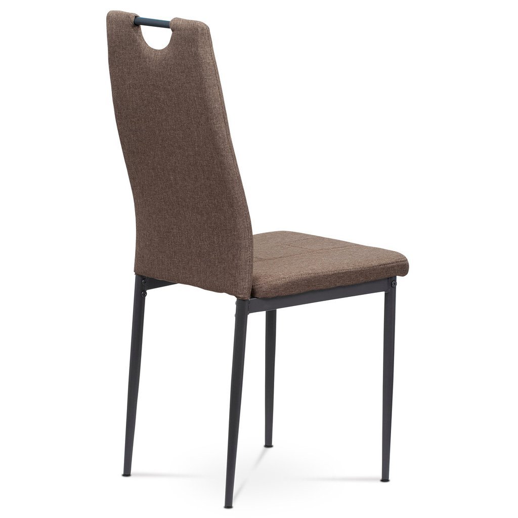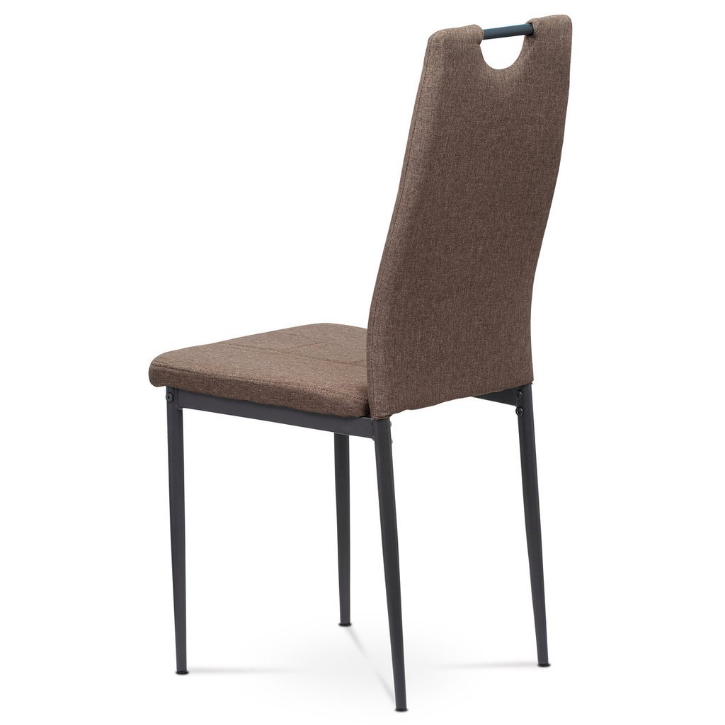 Jedálenská stolička ARIEL v elegantnej hnedej látke prináša komfort, moderný dizajn a spoľahlivú kvalitu do vašej jedálne.